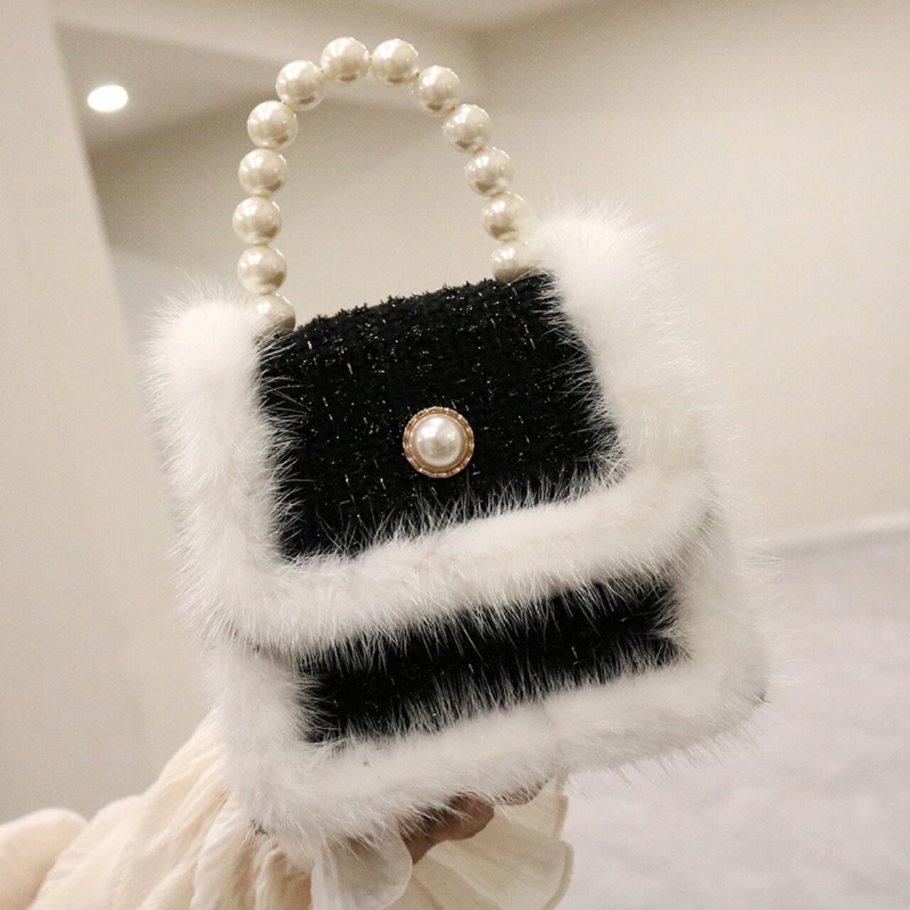 やわらかなツイードに、パールの輝きを添えた上品なミニバッグ。