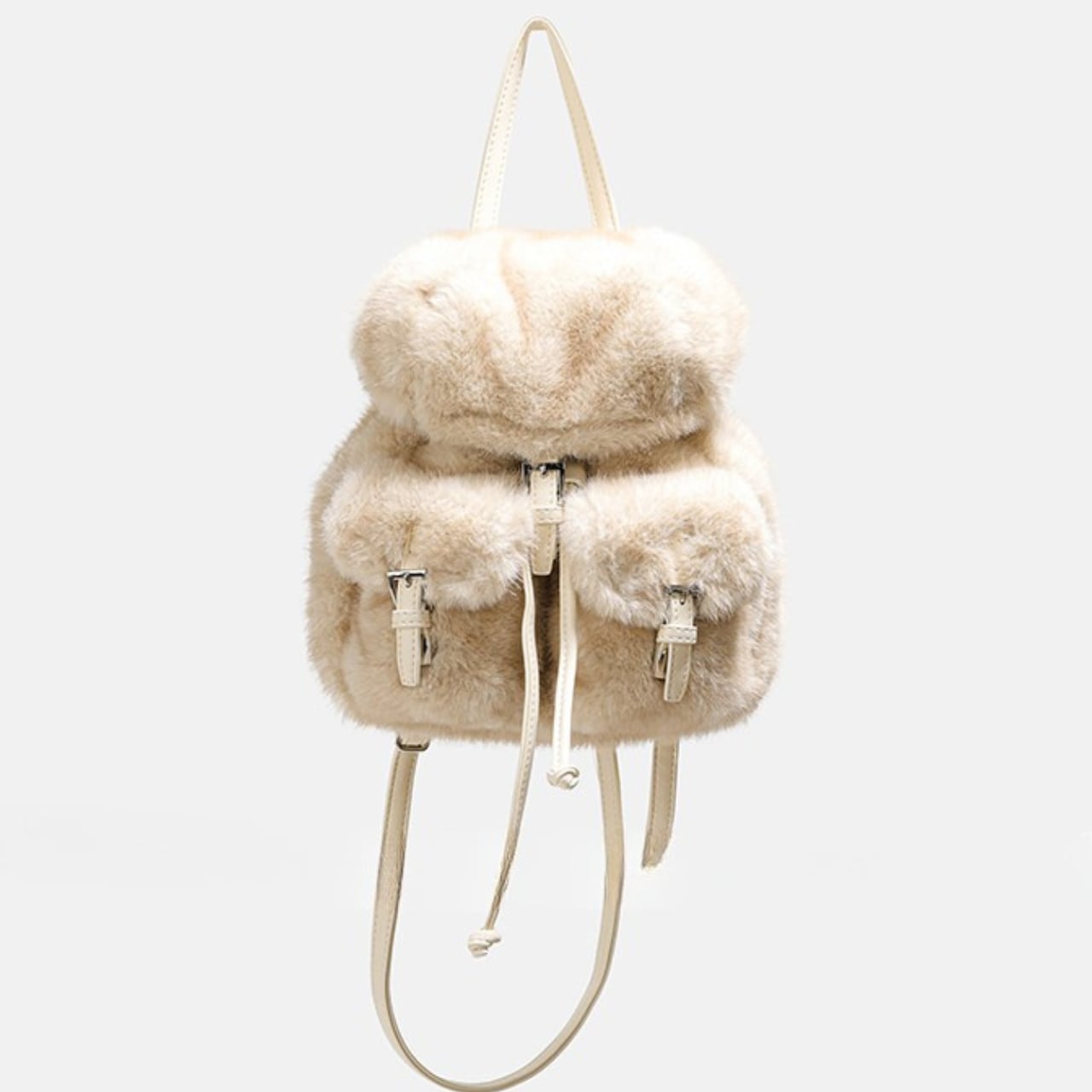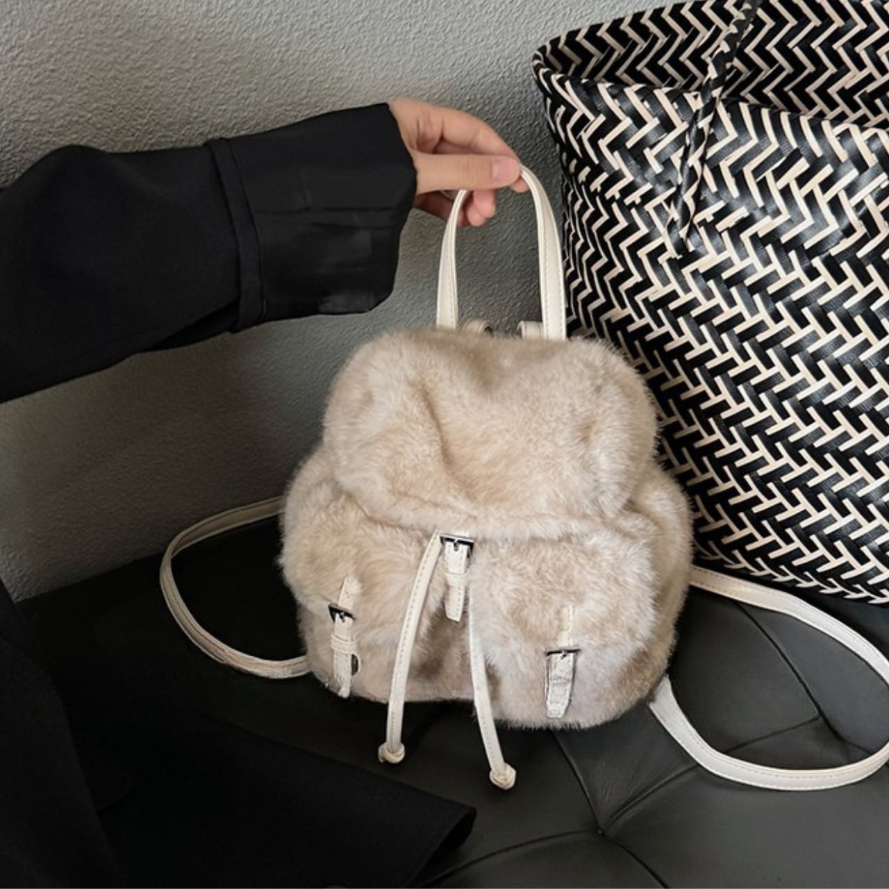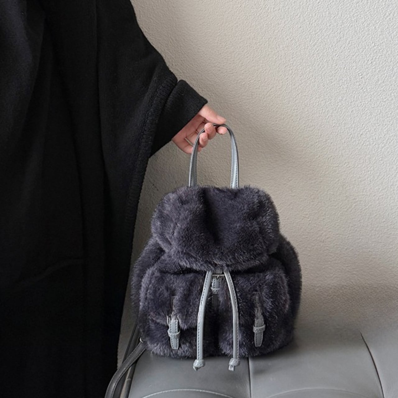 ふわふわのフェイクファーが季節感を添える、ミニサイズのバックパック。