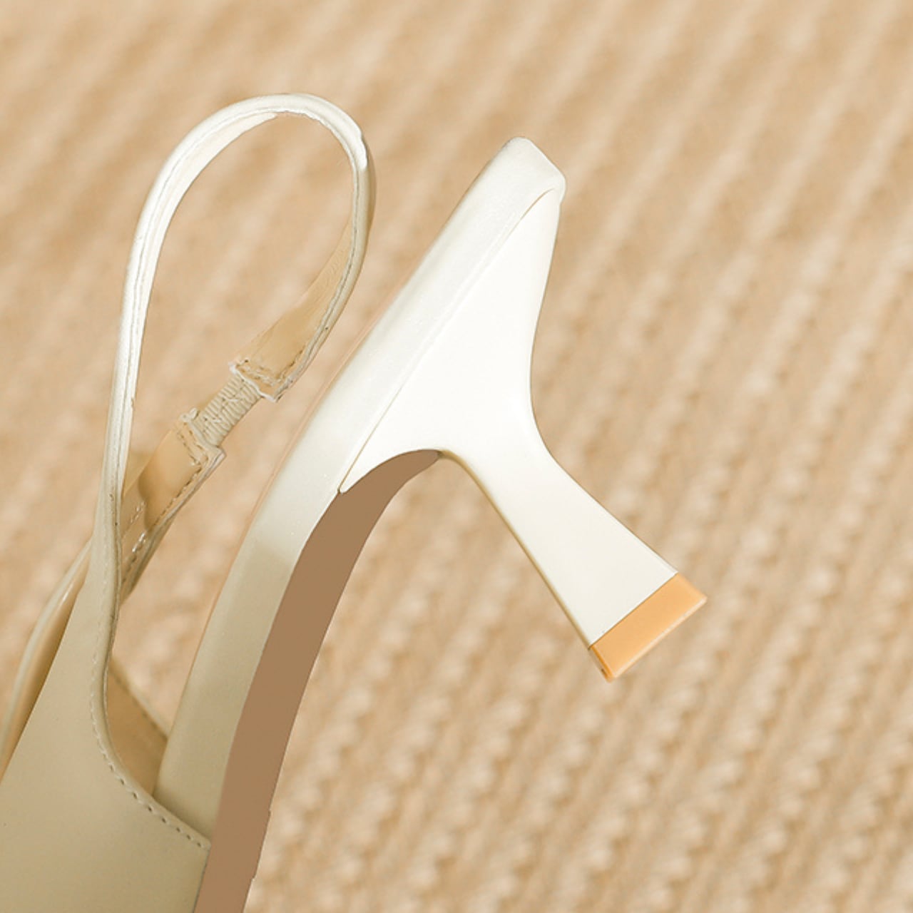 シャープなポインテッドトゥと華奢なストラップが、足元を美しく引き立てます。