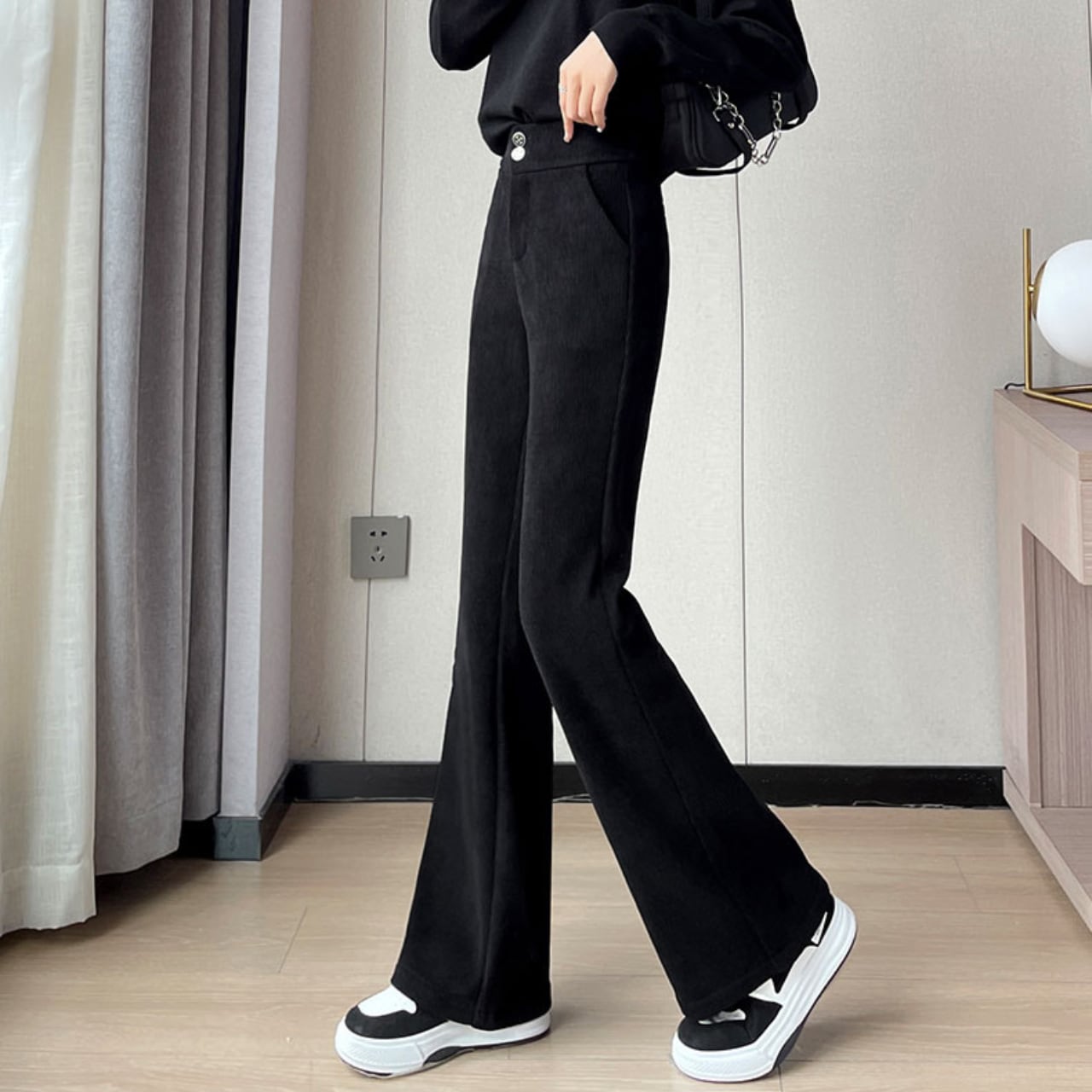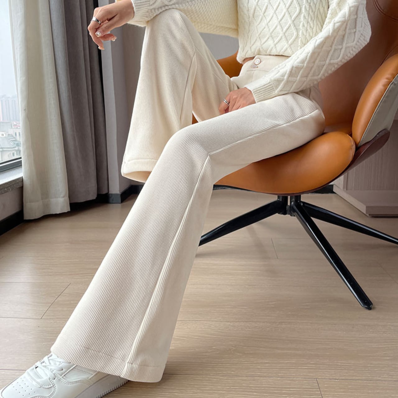 ほどよくフィットするハイウエストと、脚を長く見せるフレアラインが魅力。