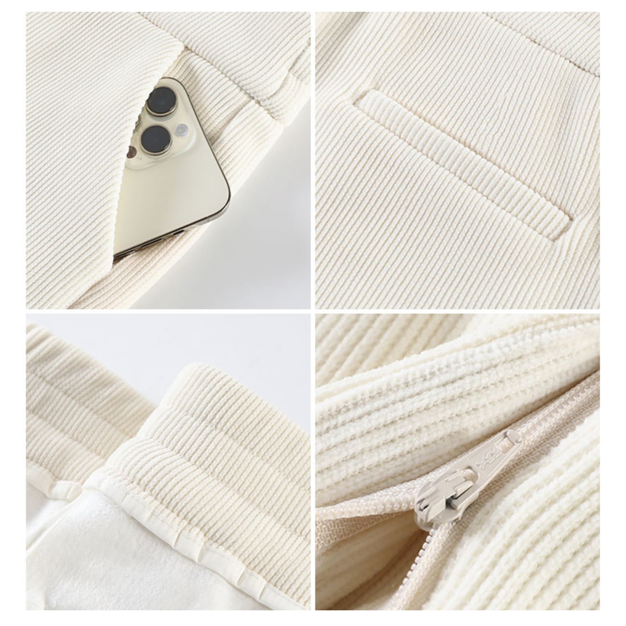 上品なコーデュロイ調素材で、きれいめにもカジュアルにも着まわせます。