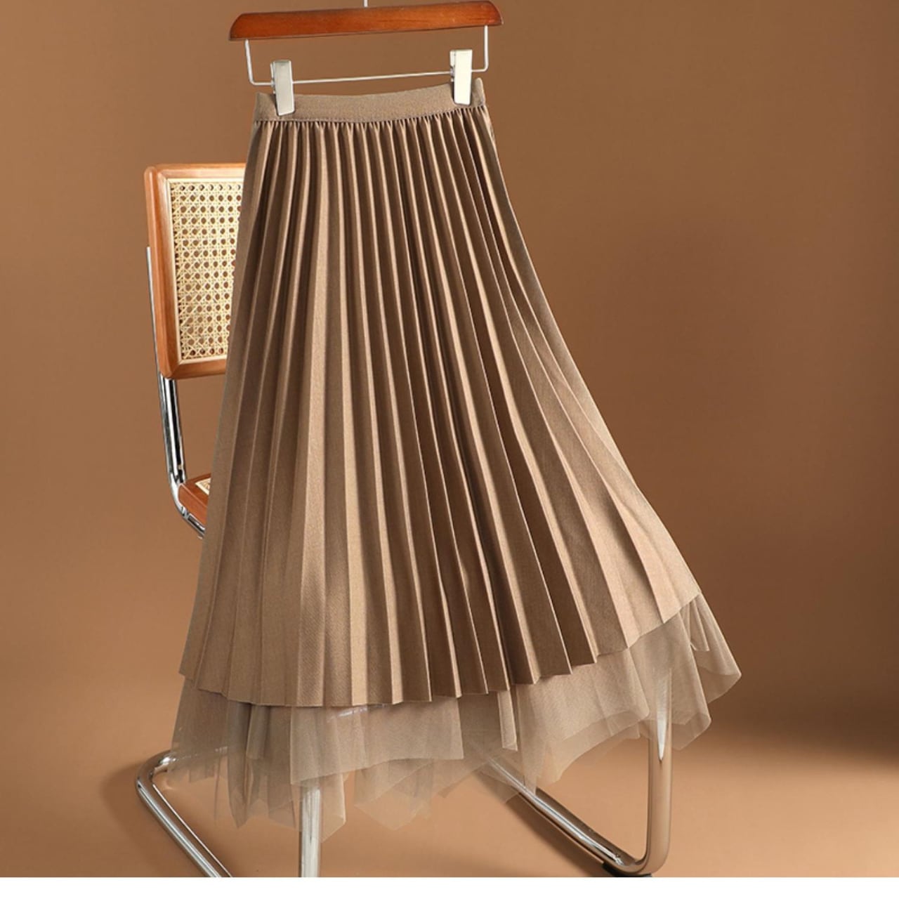 ふんわり広がるティアードデザインが華やかな2WAYスカート。