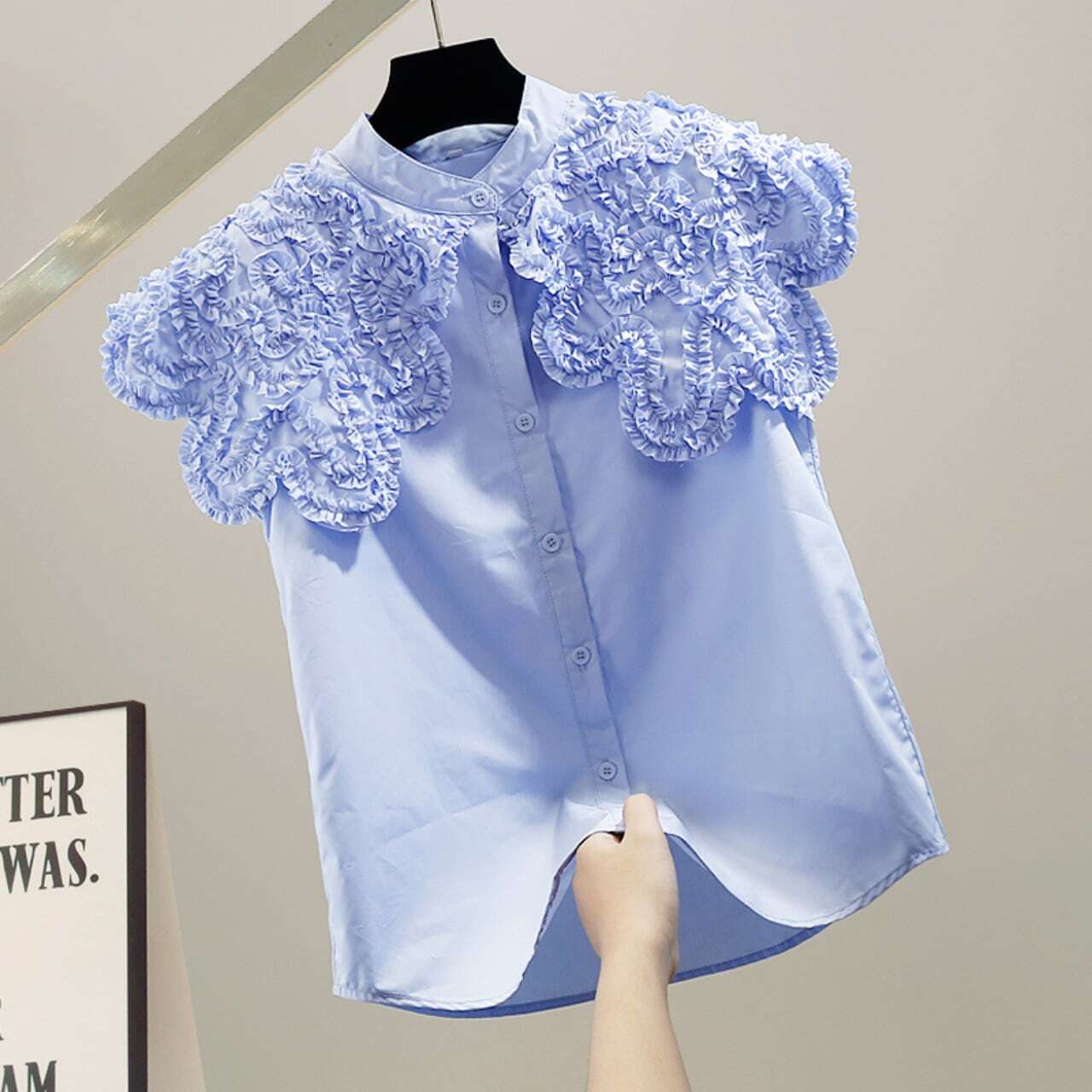 華やかで立体的なフリルが目を引く、大人のエレガントブラウス。