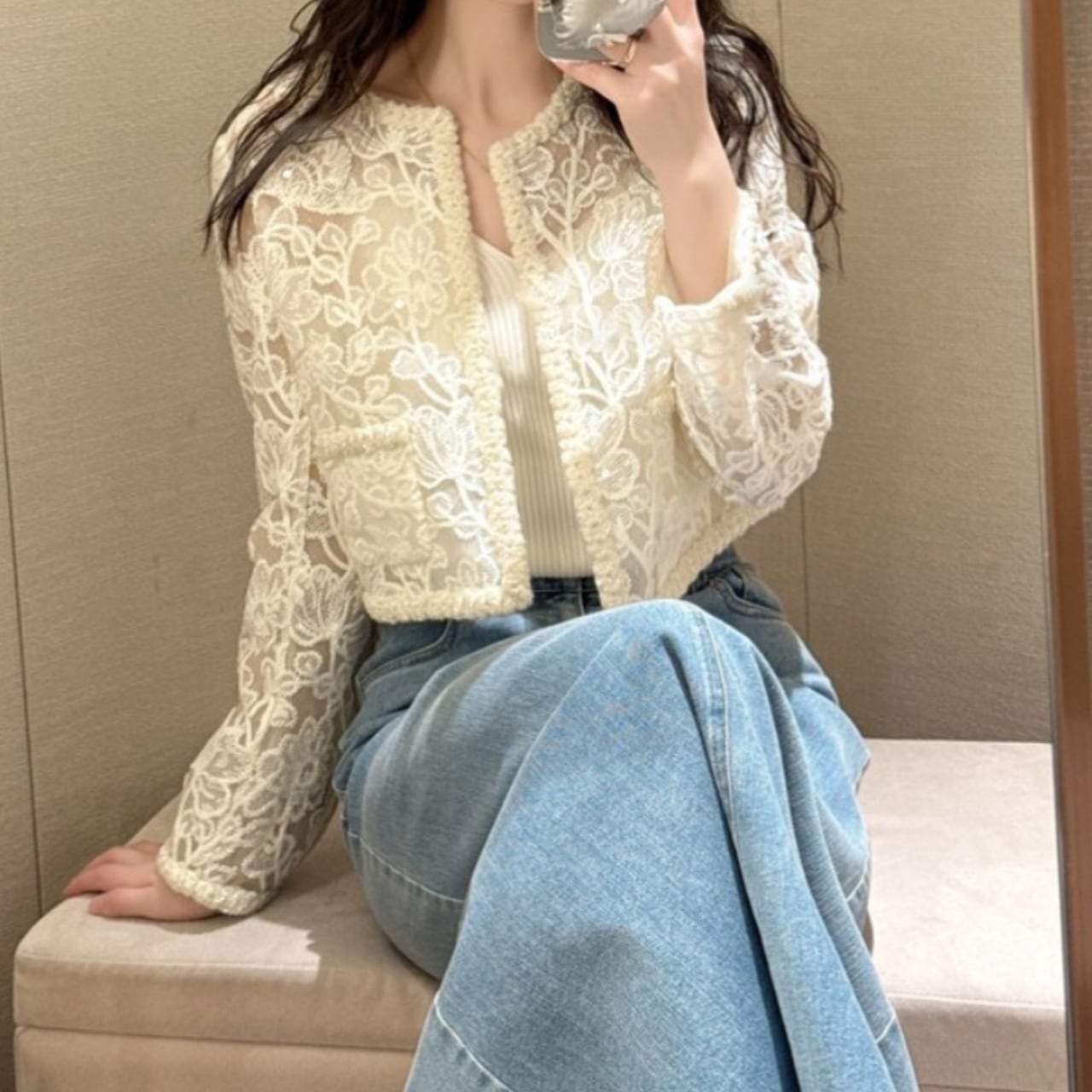 透け感のある繊細なレースが、フェミニンな品格を演出。