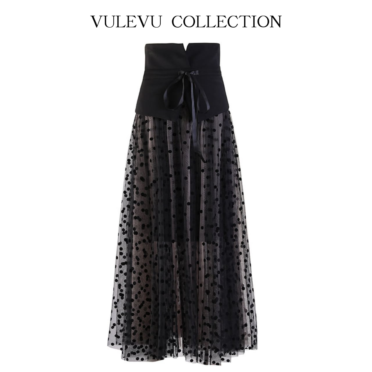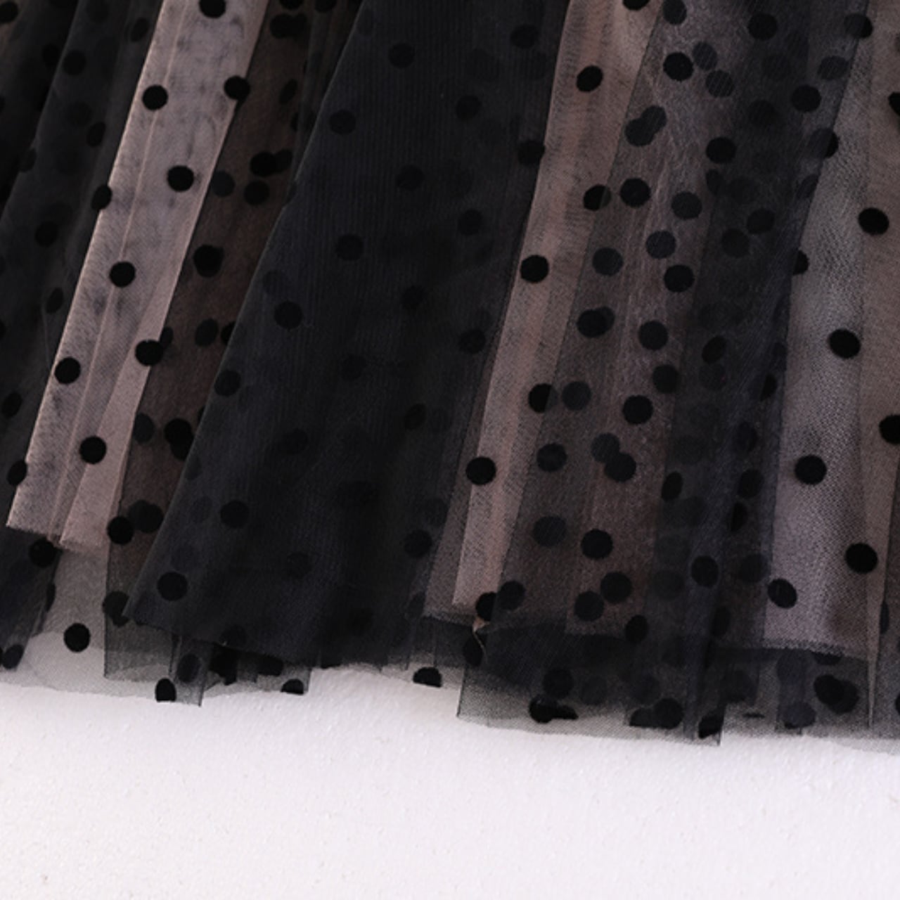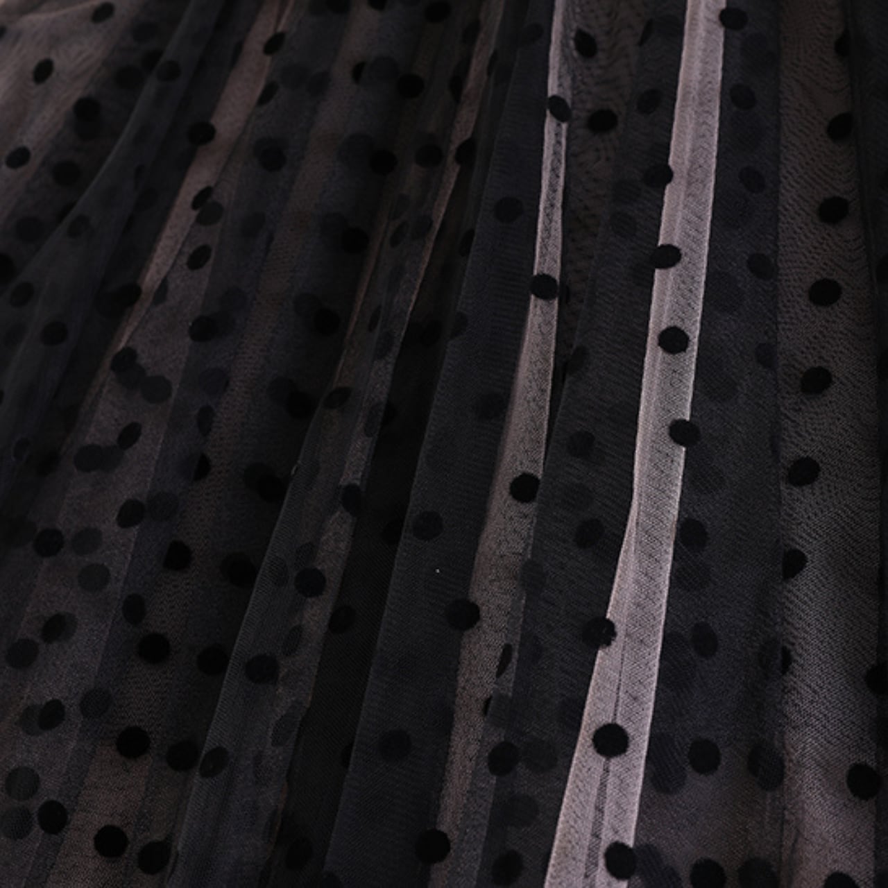 上品なドット柄チュールを贅沢に重ねた、エレガントなロングスカート。