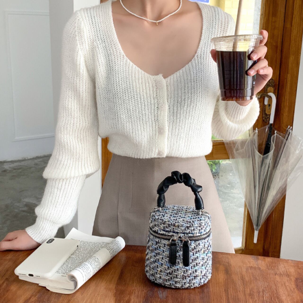 ツイード ハンドルショルダー バッグ 3color BA42