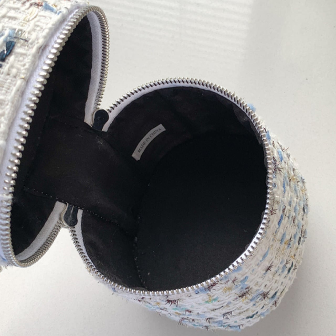華やかなツイード素材に、くしゅっとしたハンドルが愛らしいショルダーバッグ。