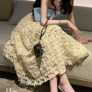 同系色のインナー付きで透け感を気にせず着用でき、シンプルなトップスに合わせるだけでエレガントな印象に。特別な日のお出かけはもちろん、普段のコーデにもときめきを添える一着です。