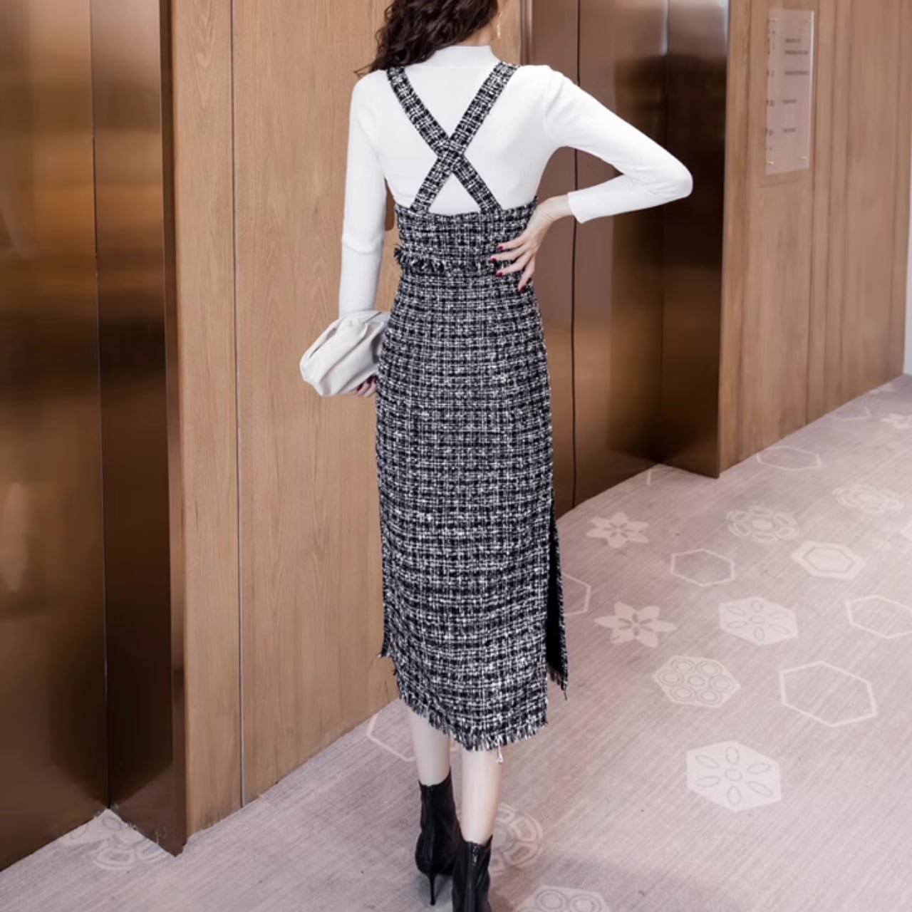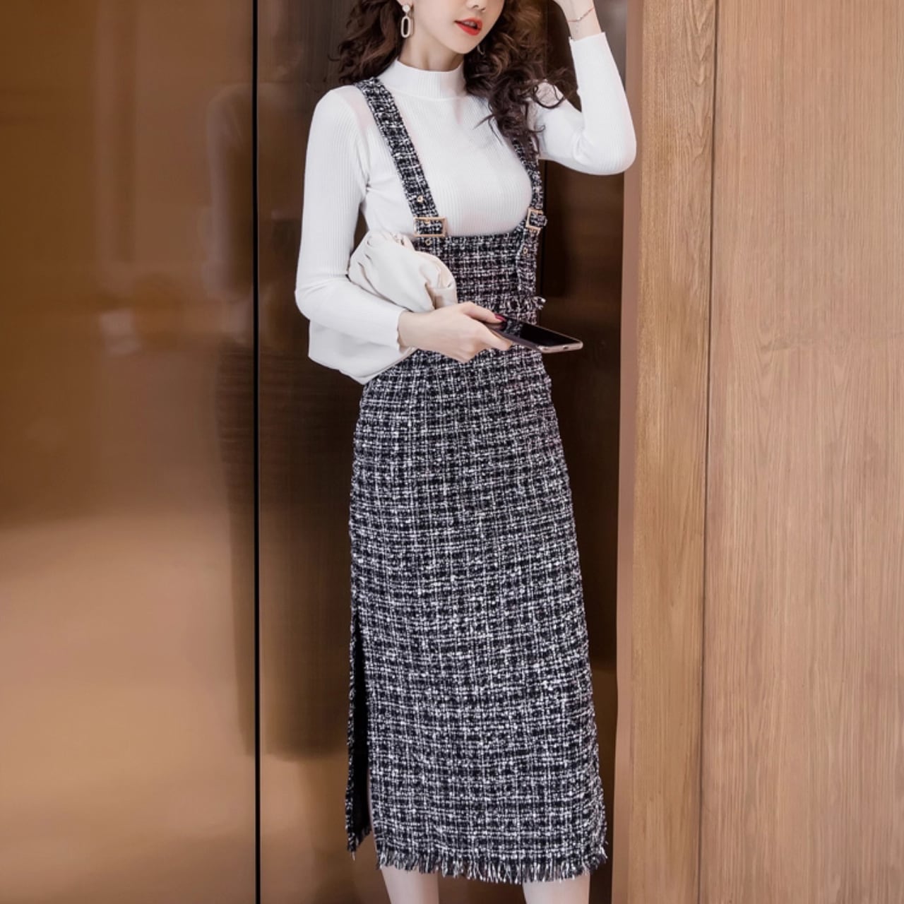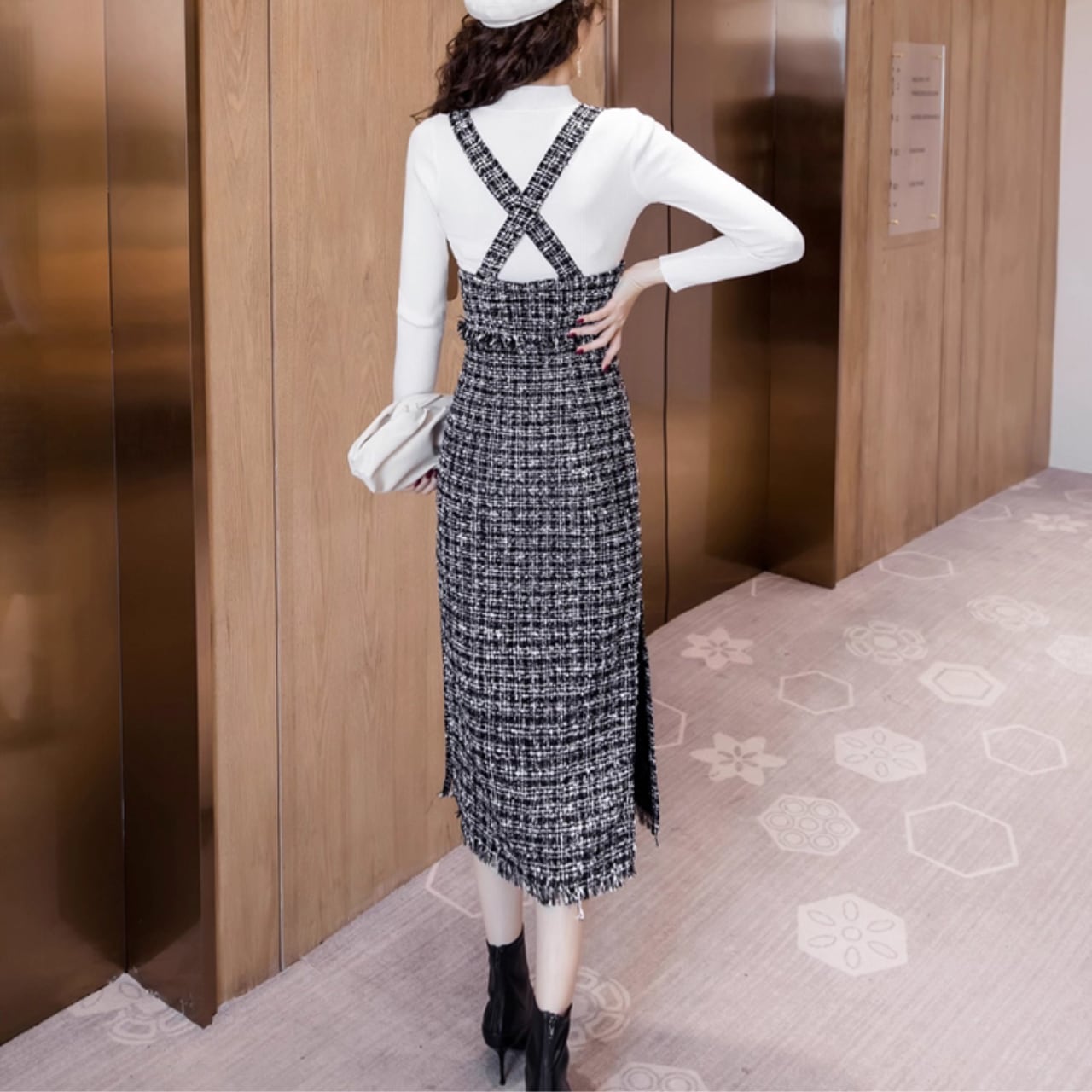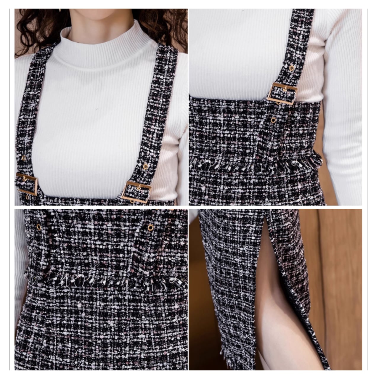 クラシカルなツイード素材に、すっきりとしたスリットデザインをプラス。