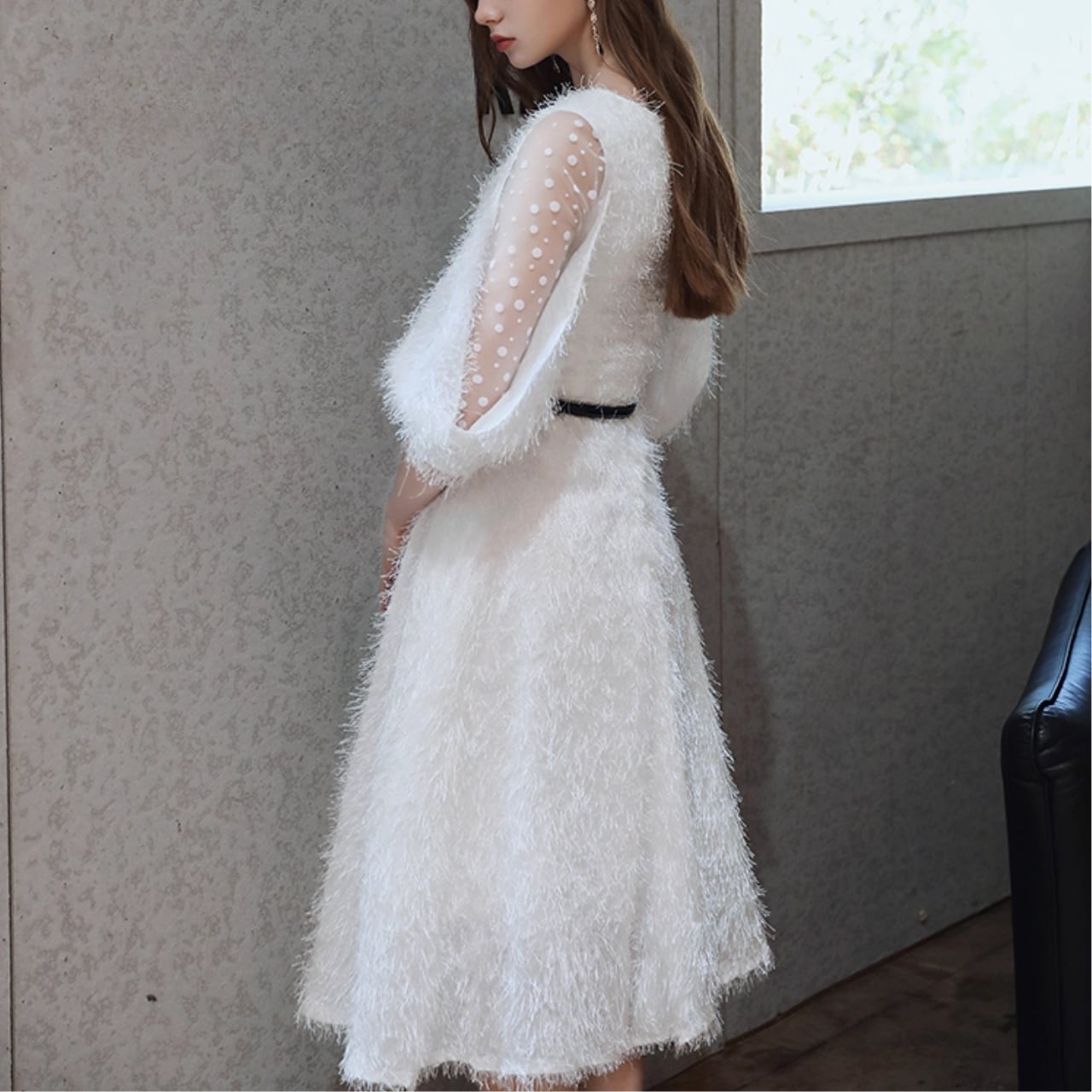 繊細なドットチュールとふんわり立体感のある生地が、気品と可憐さを引き立てます。