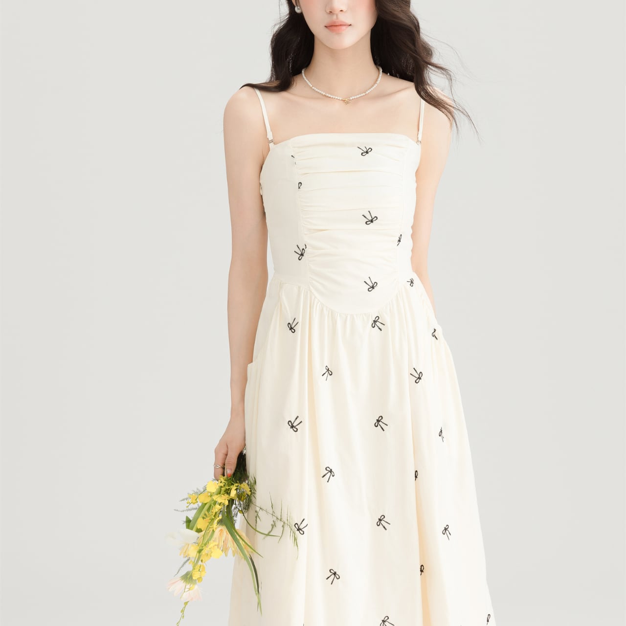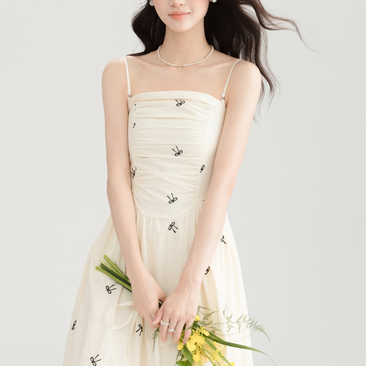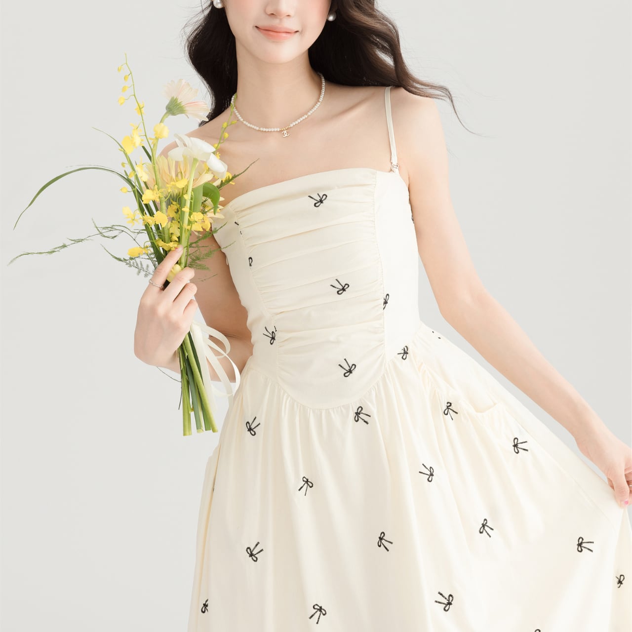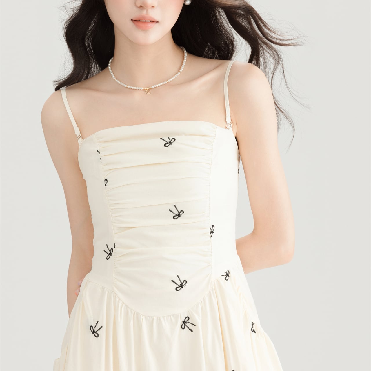 全体に繊細なリボン刺繍が施された、可憐で上品なキャミワンピース。