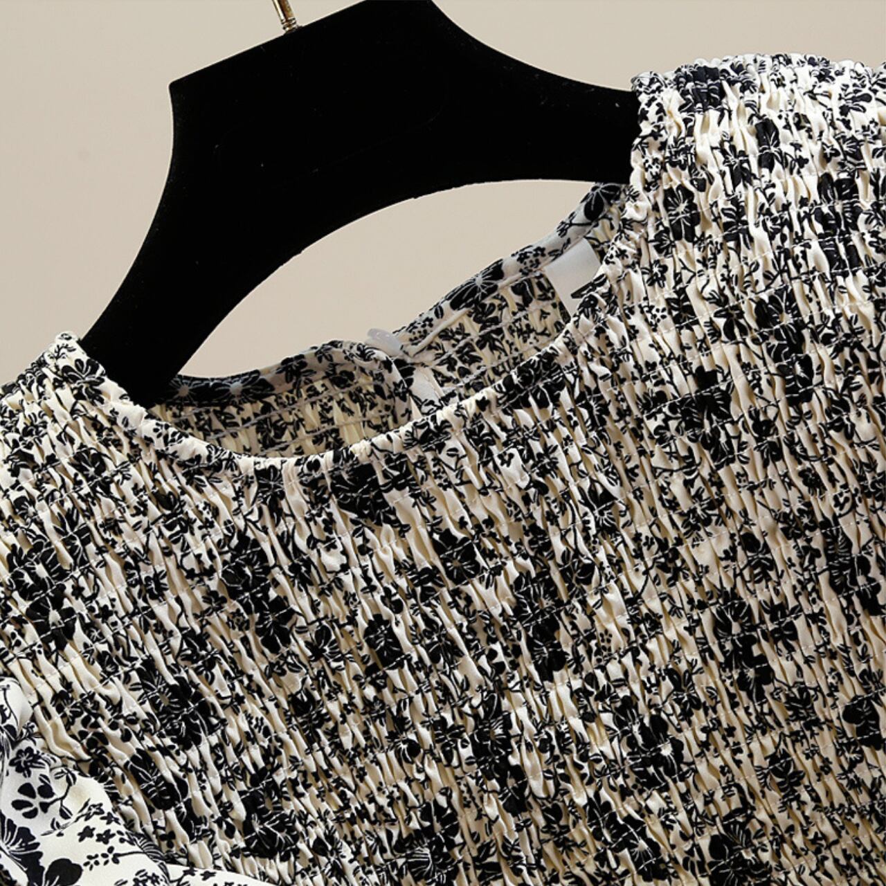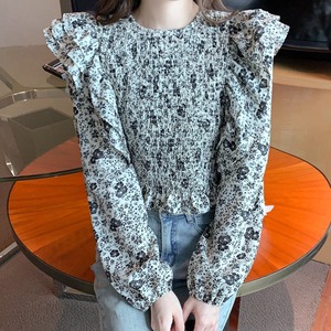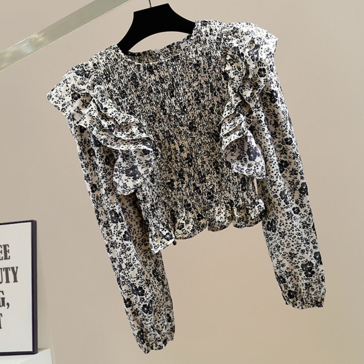 フリルスリーブ シャーリングブラウスT092