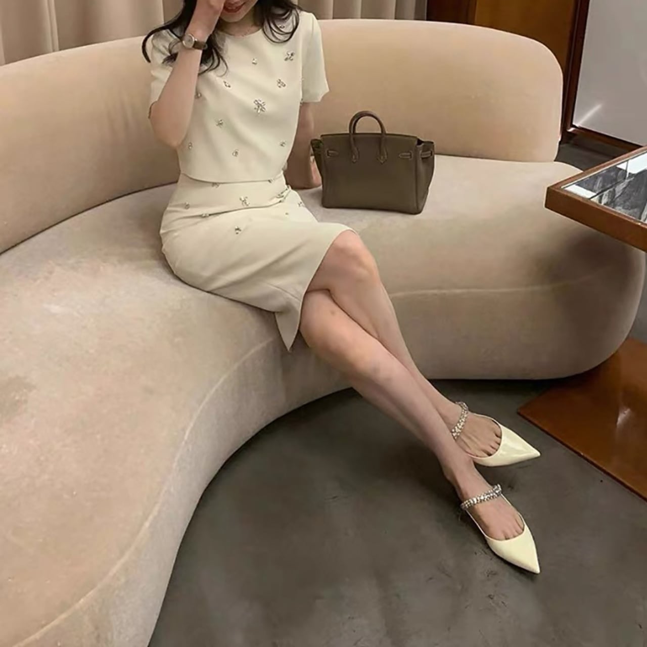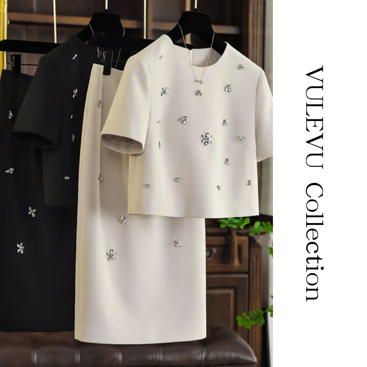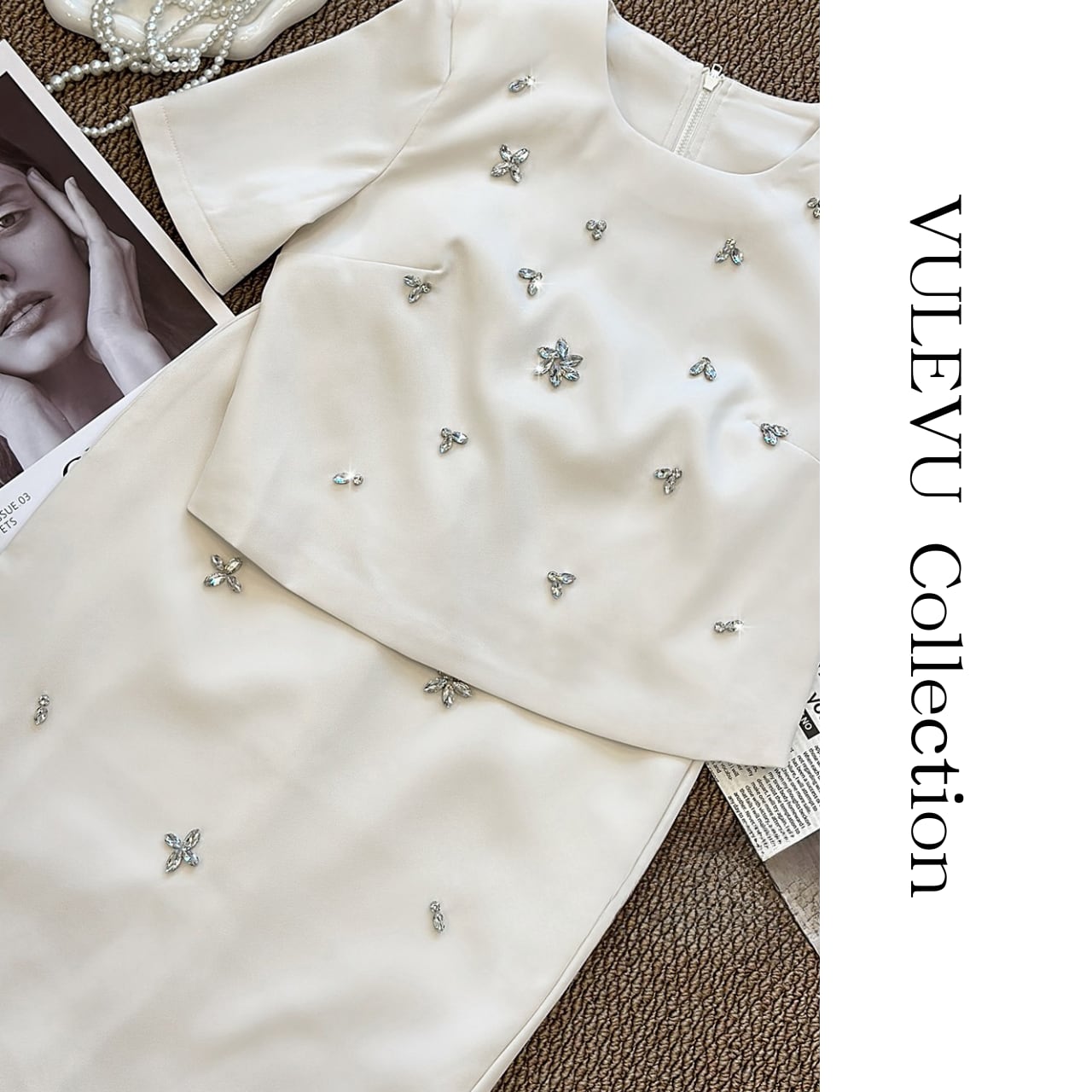 繊細なビジューが華やかさを添える、大人のための上品セットアップ。