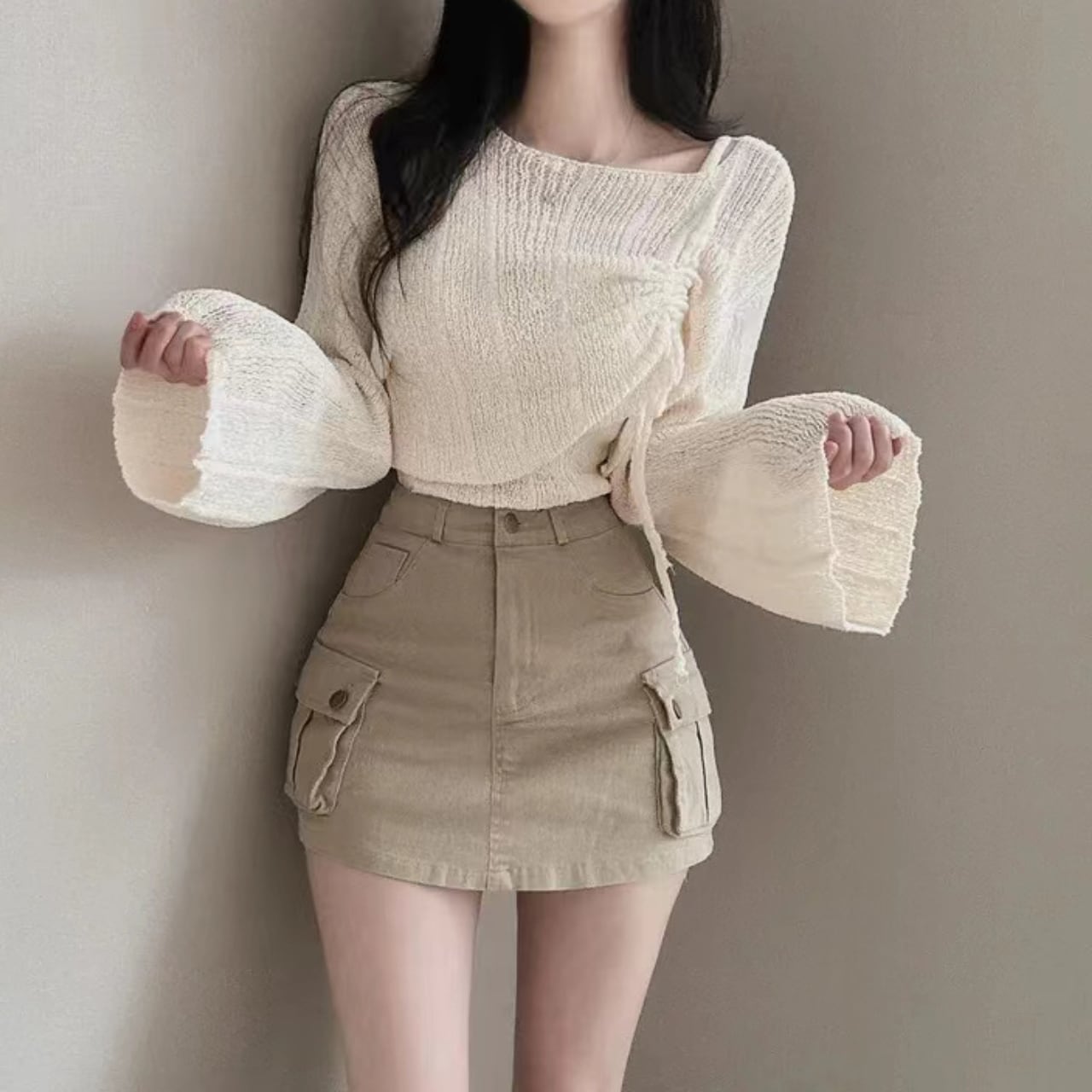 スカートやパンツどちらにも合わせやすく、カジュアルからきれいめまで幅広いスタイルに対応。