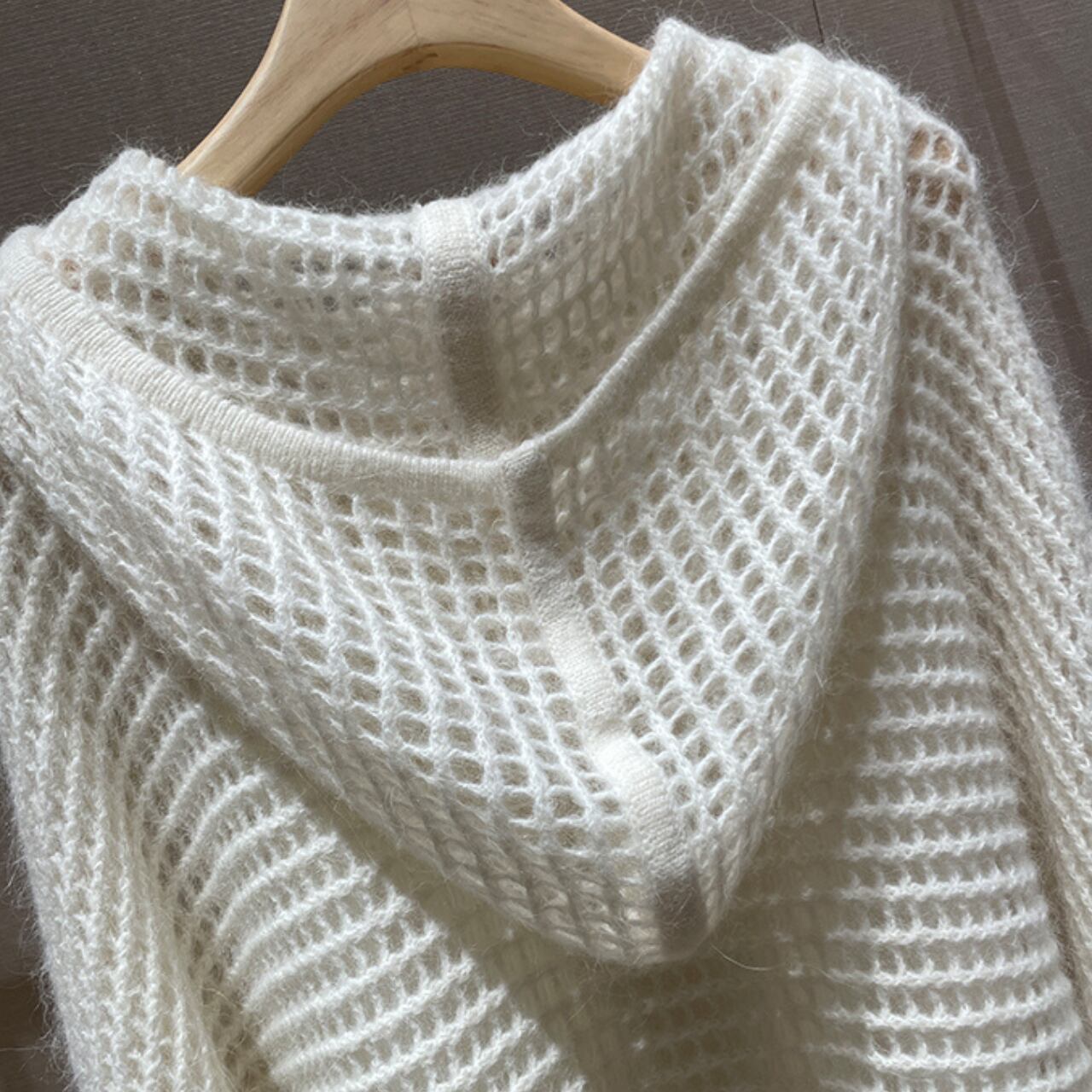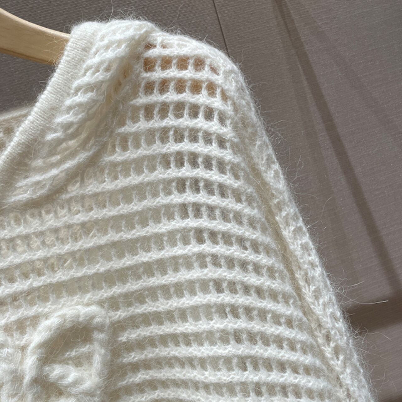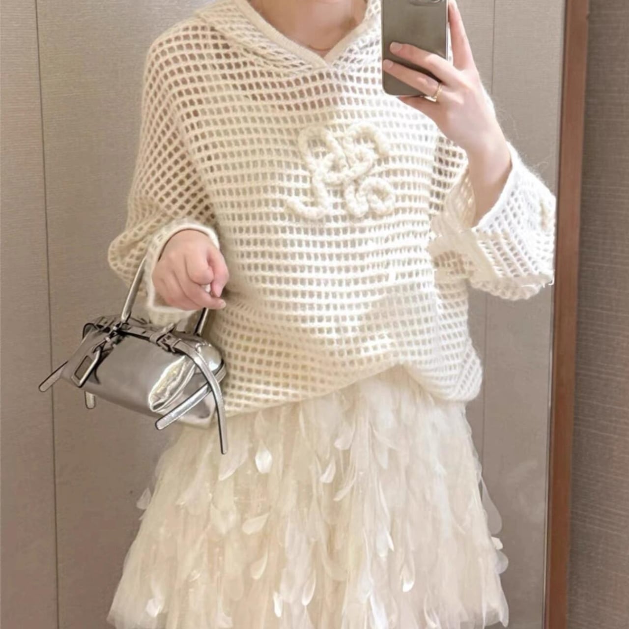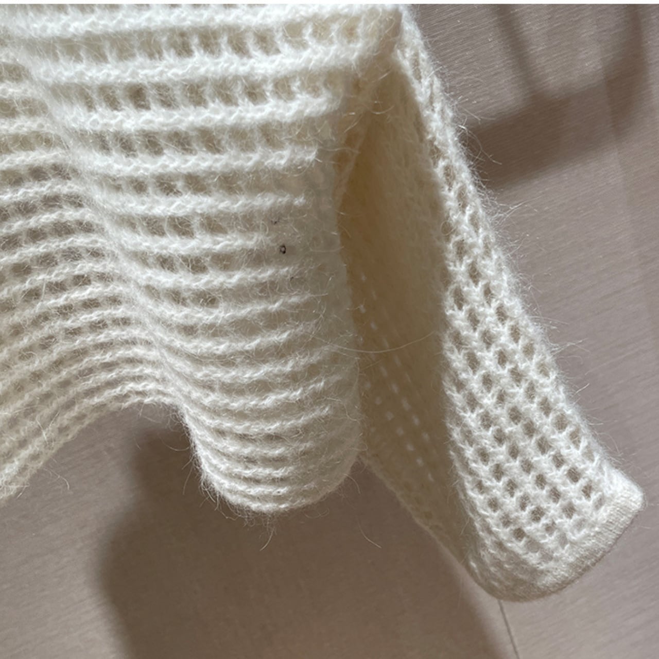 メッシュニットの透け感が軽やかで、上品な抜け感を演出します。