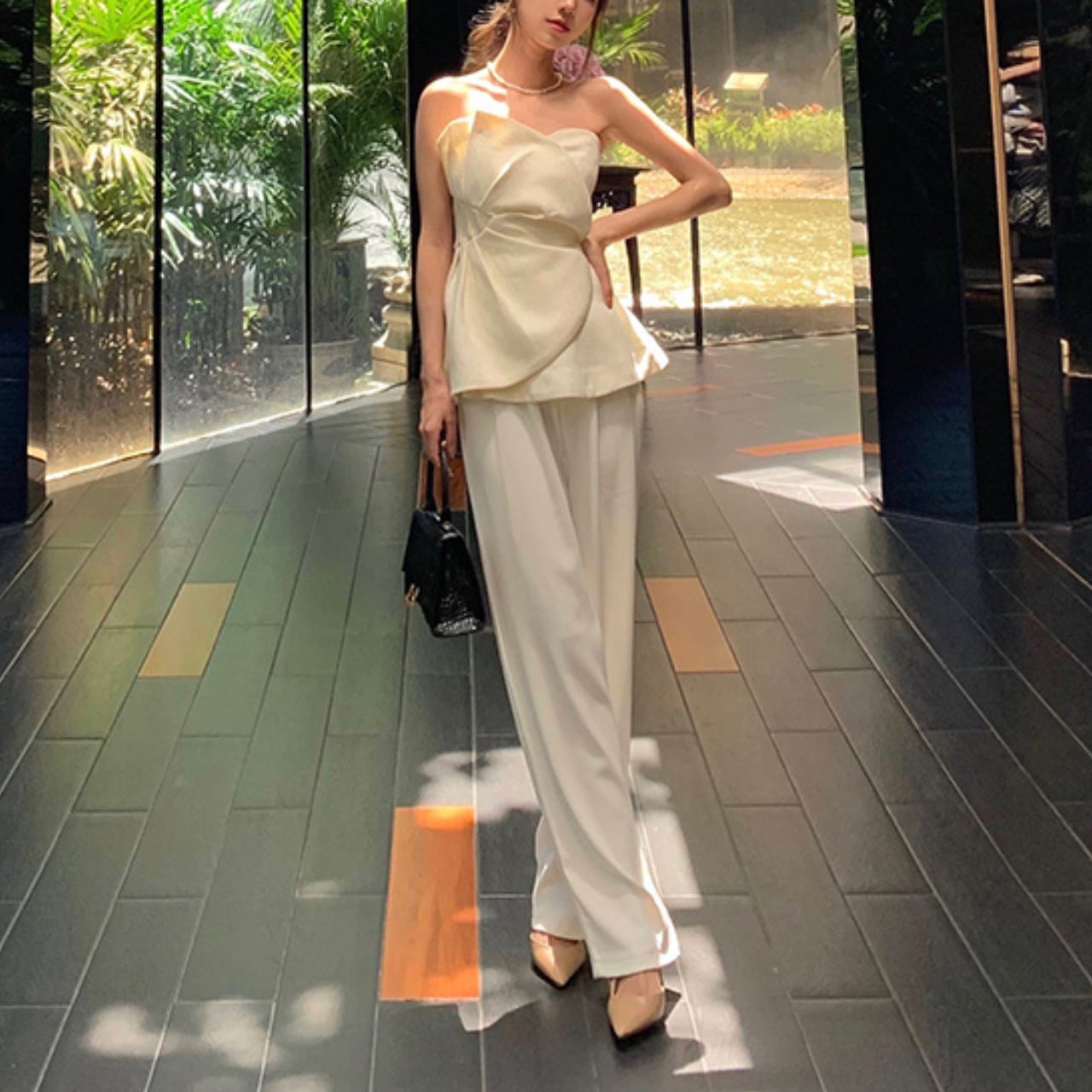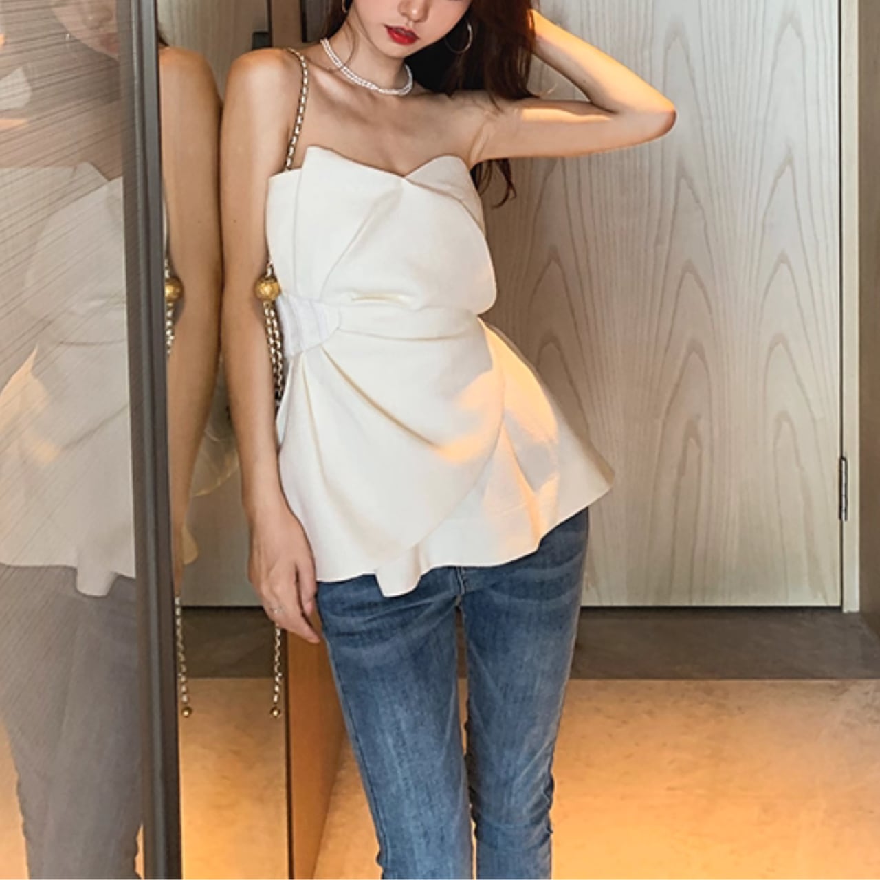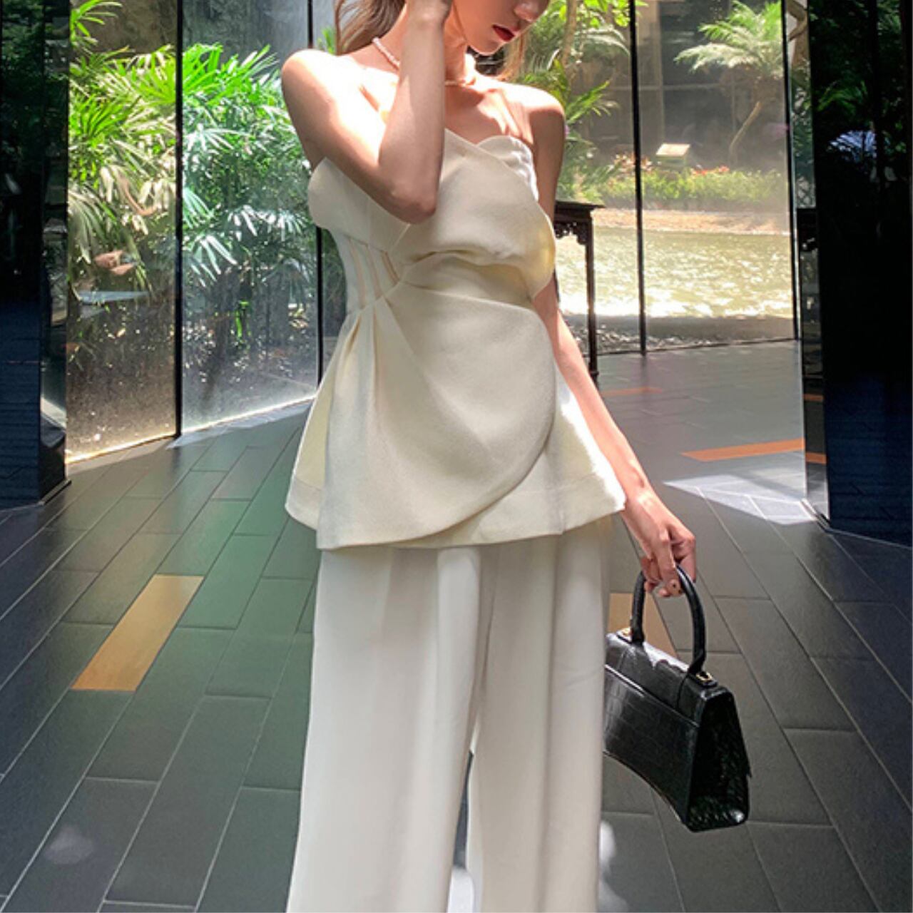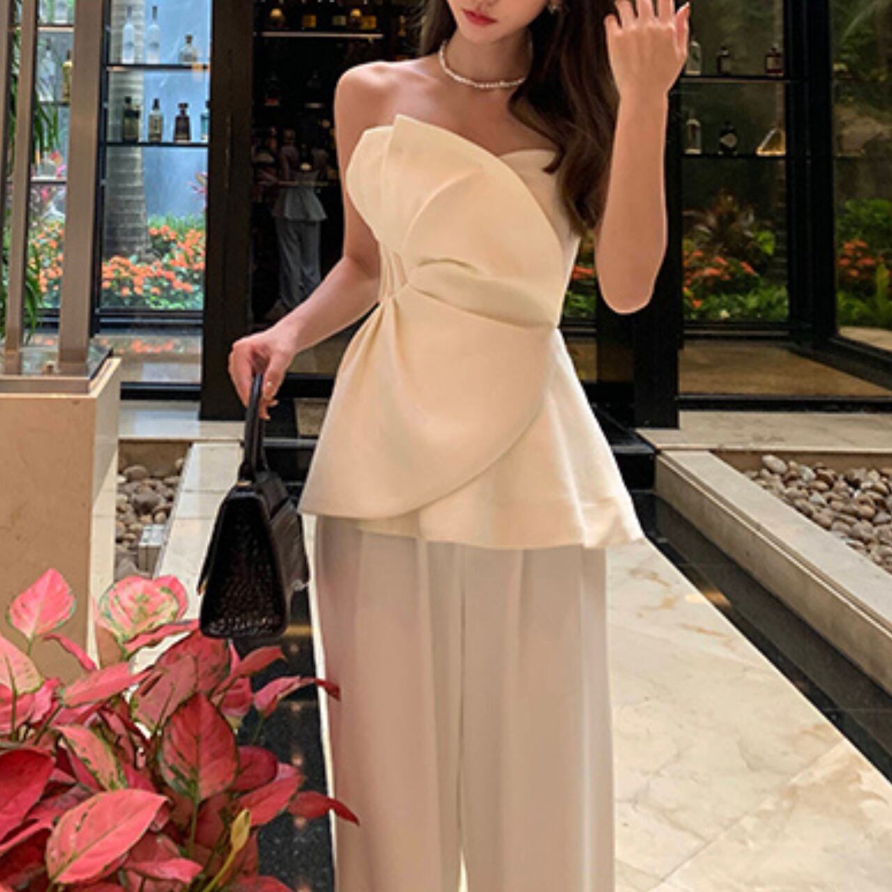 立体的なドレープデザインが目を惹く、オフショルダーのエレガントトップス。