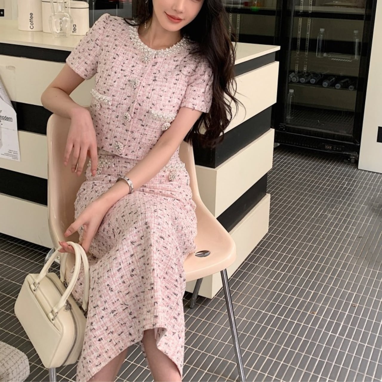 クラシカルな雰囲気漂うハイウエストツイードスカート。すっきりとしたIラインシルエットで、スタイルアップ効果も抜群。ジャケット【エレガントピンクツイード ジャケットA46】とのセットアップで特別感を演出できます。