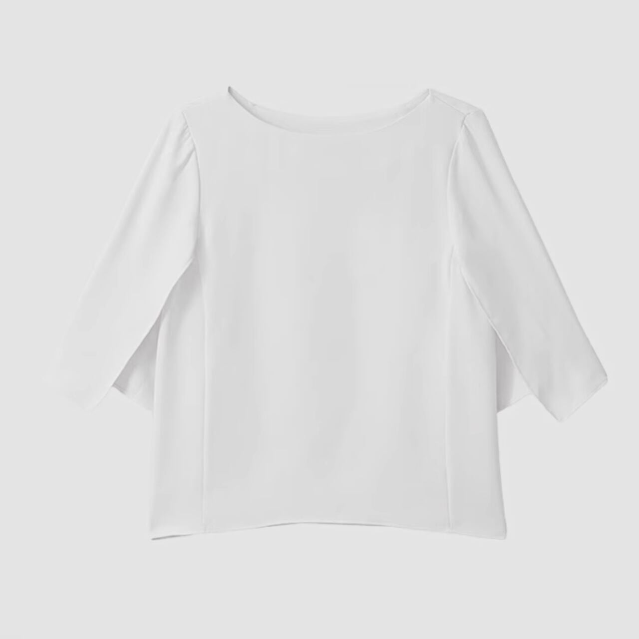 しなやかに広がるスリットスリーブが、動くたびに美しく揺れ、上半身をエレガントに演出。