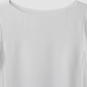 ボートネックのシンプルなデザインは、アクセいらずでも顔まわりが華やかに。