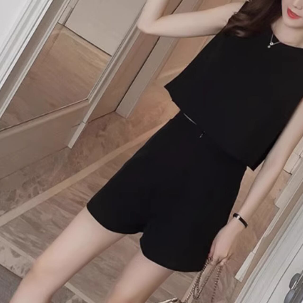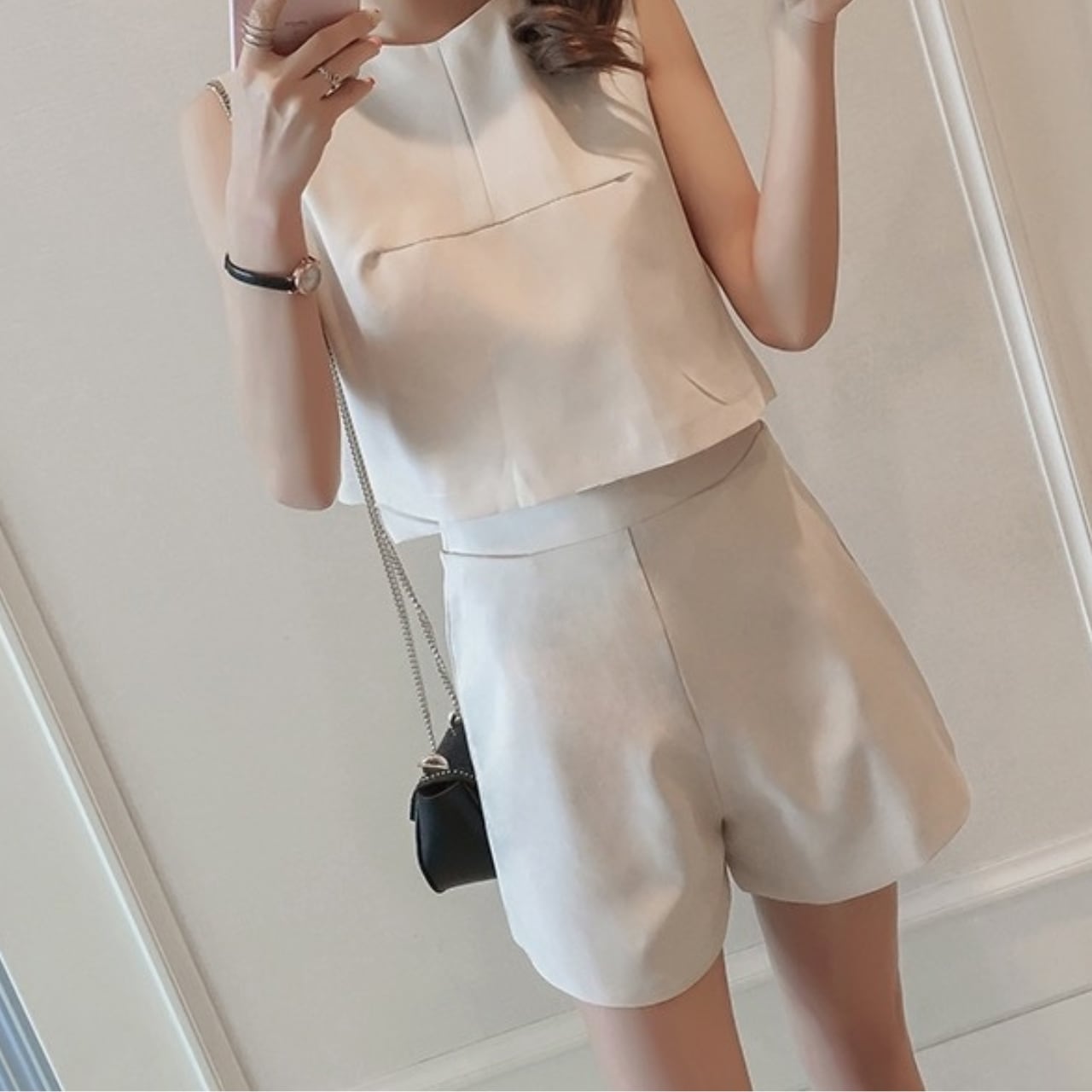 ほんのり肌見せが叶うバックスタイルに、艶めくリボンとパールのディテールが映えるセットアップ。