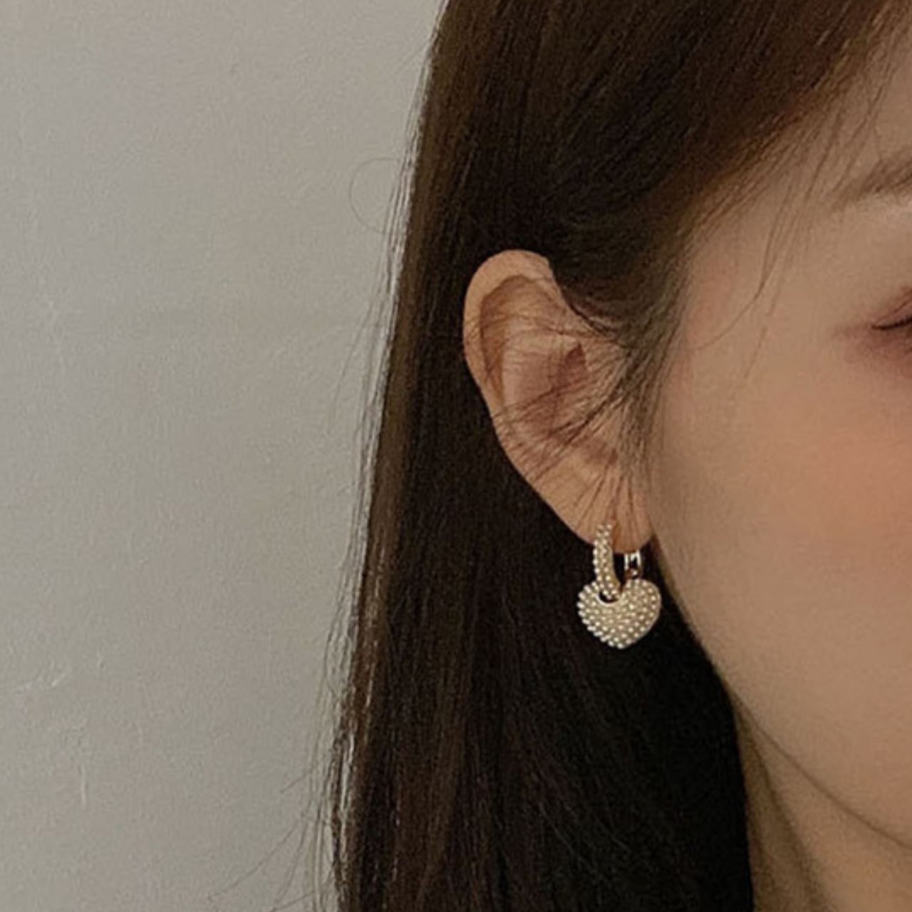 繊細なパールを敷き詰めた、立体感のあるハートモチーフが印象的なイヤリング。
