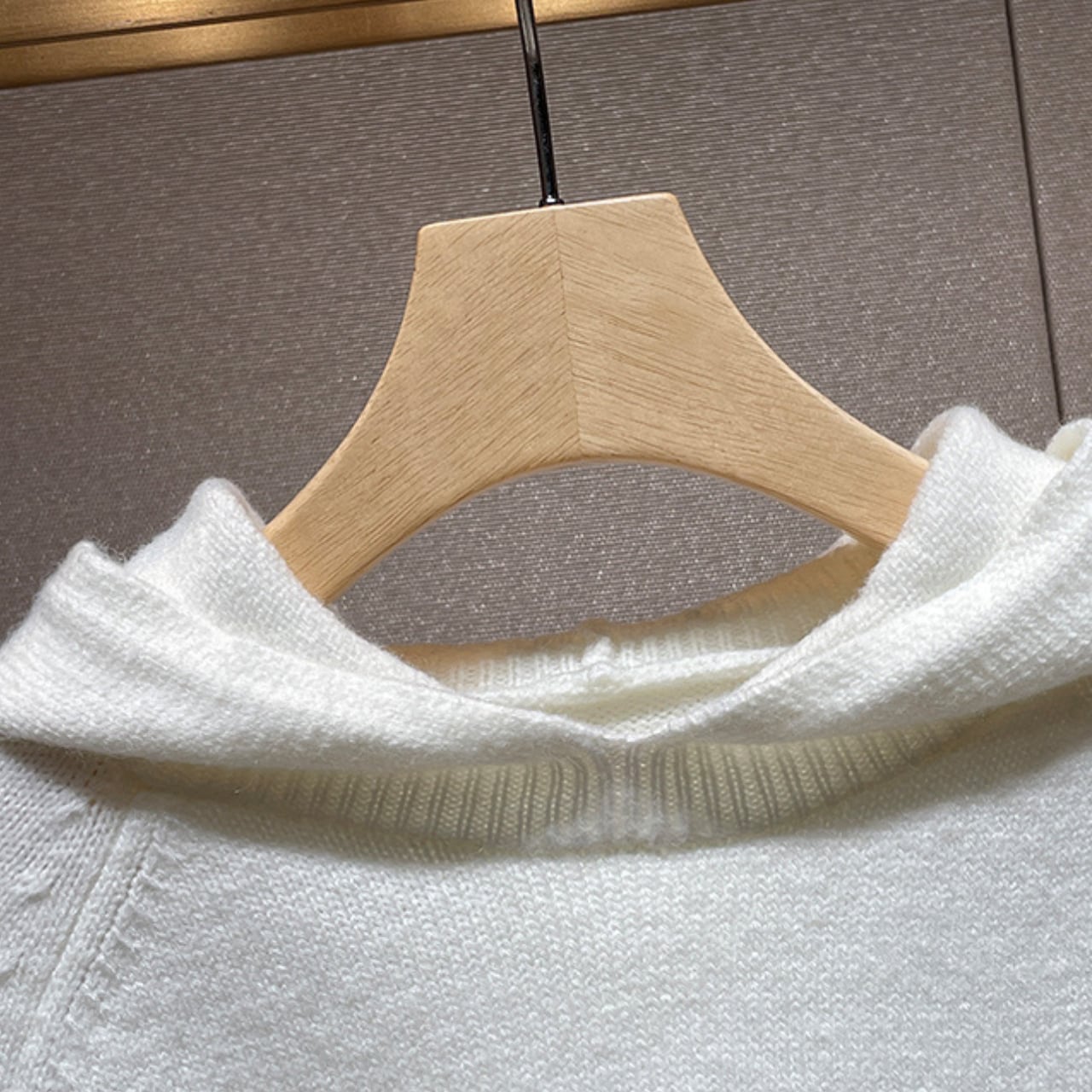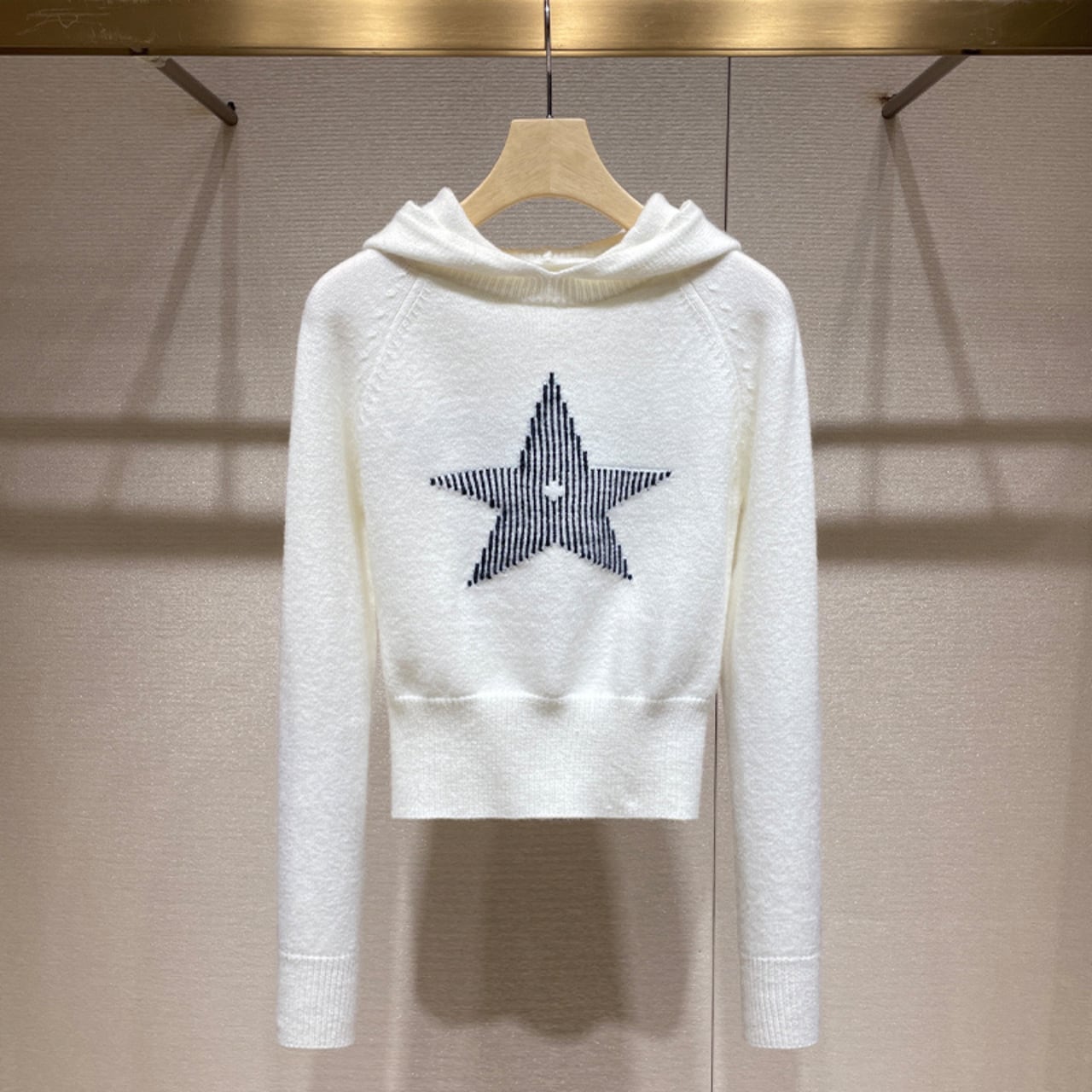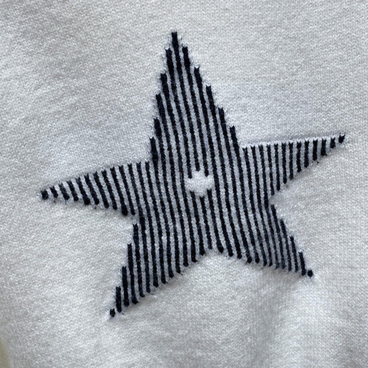 立体感のあるスター刺繍が印象的なフード付きニット。