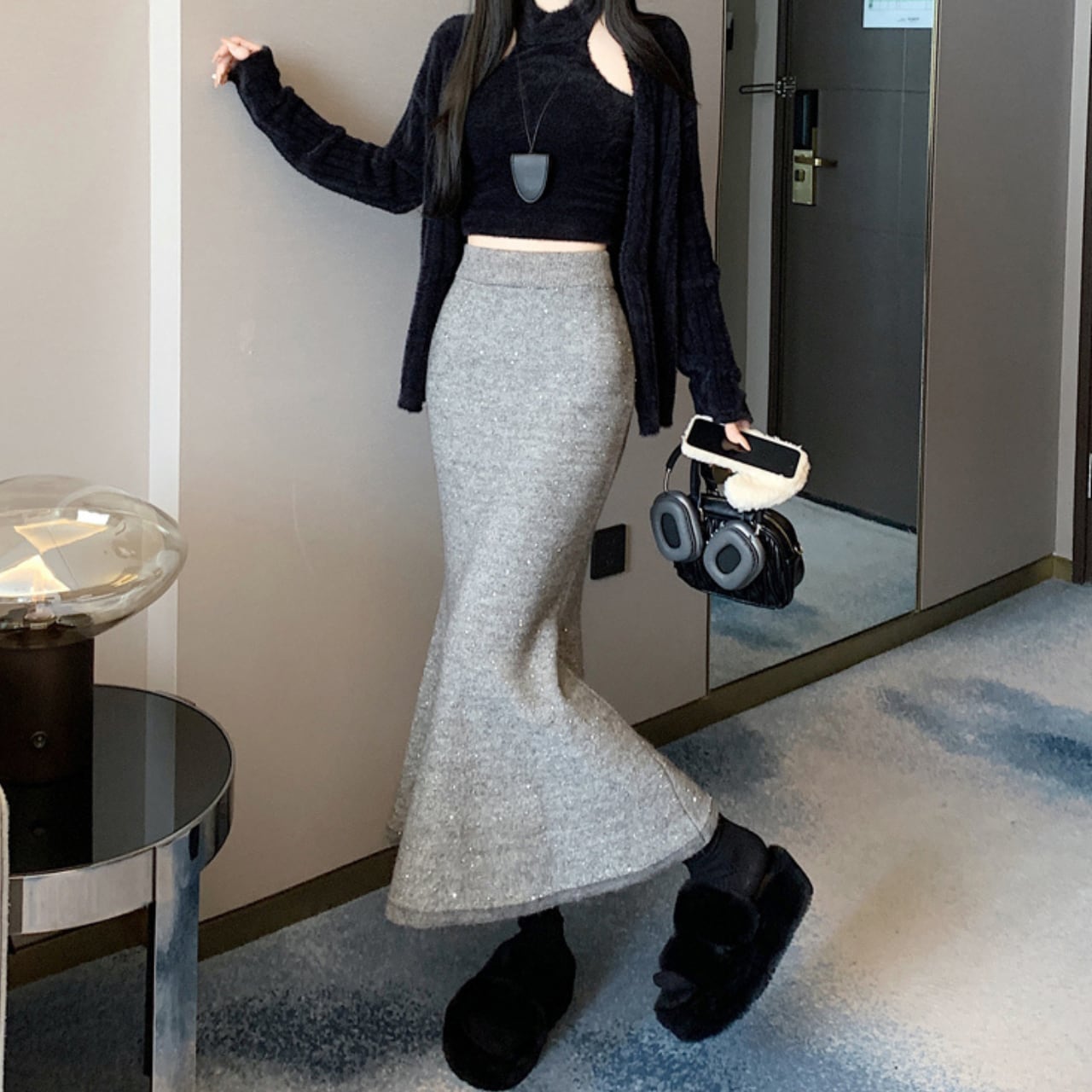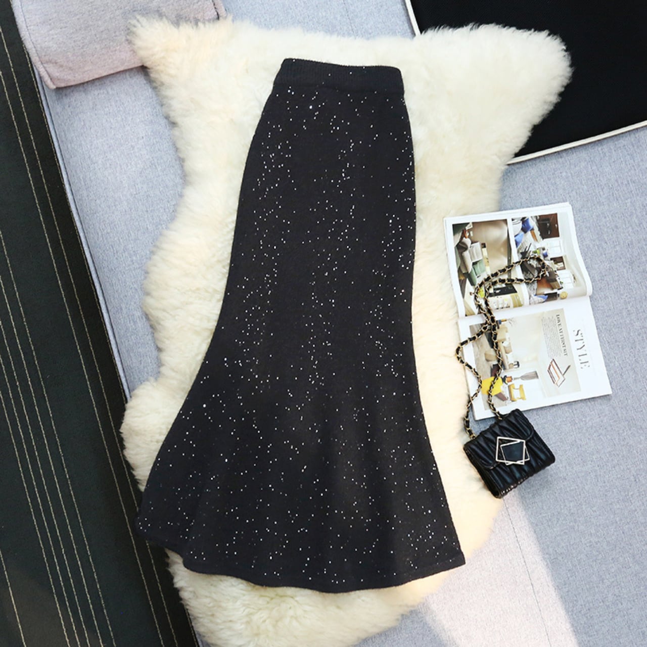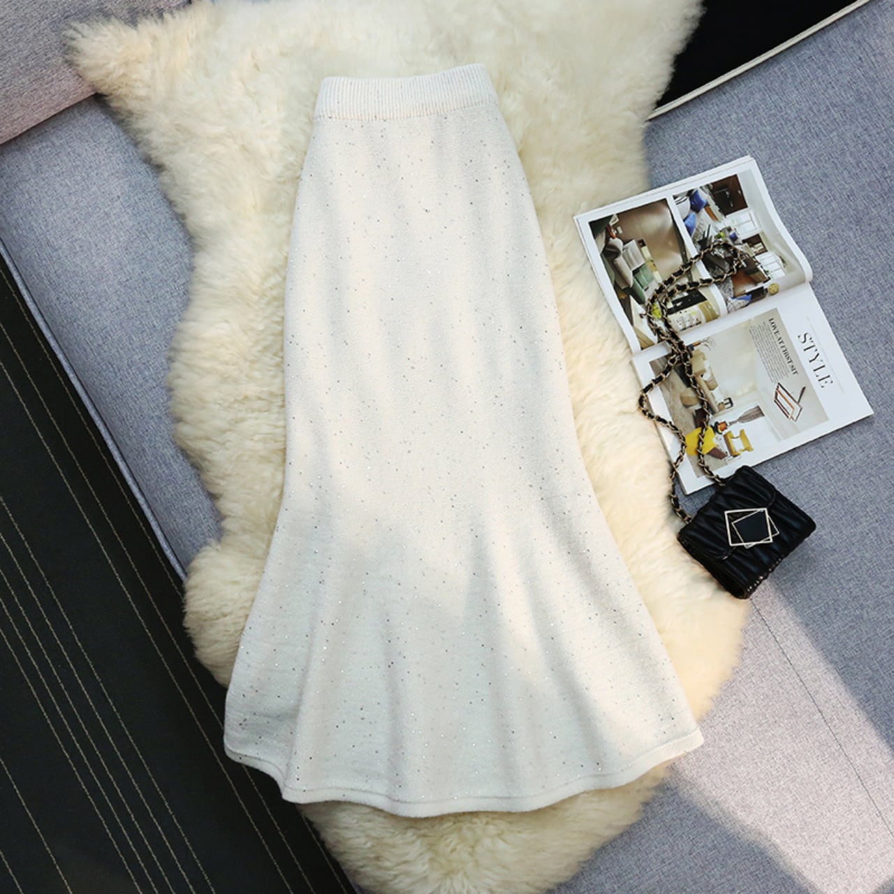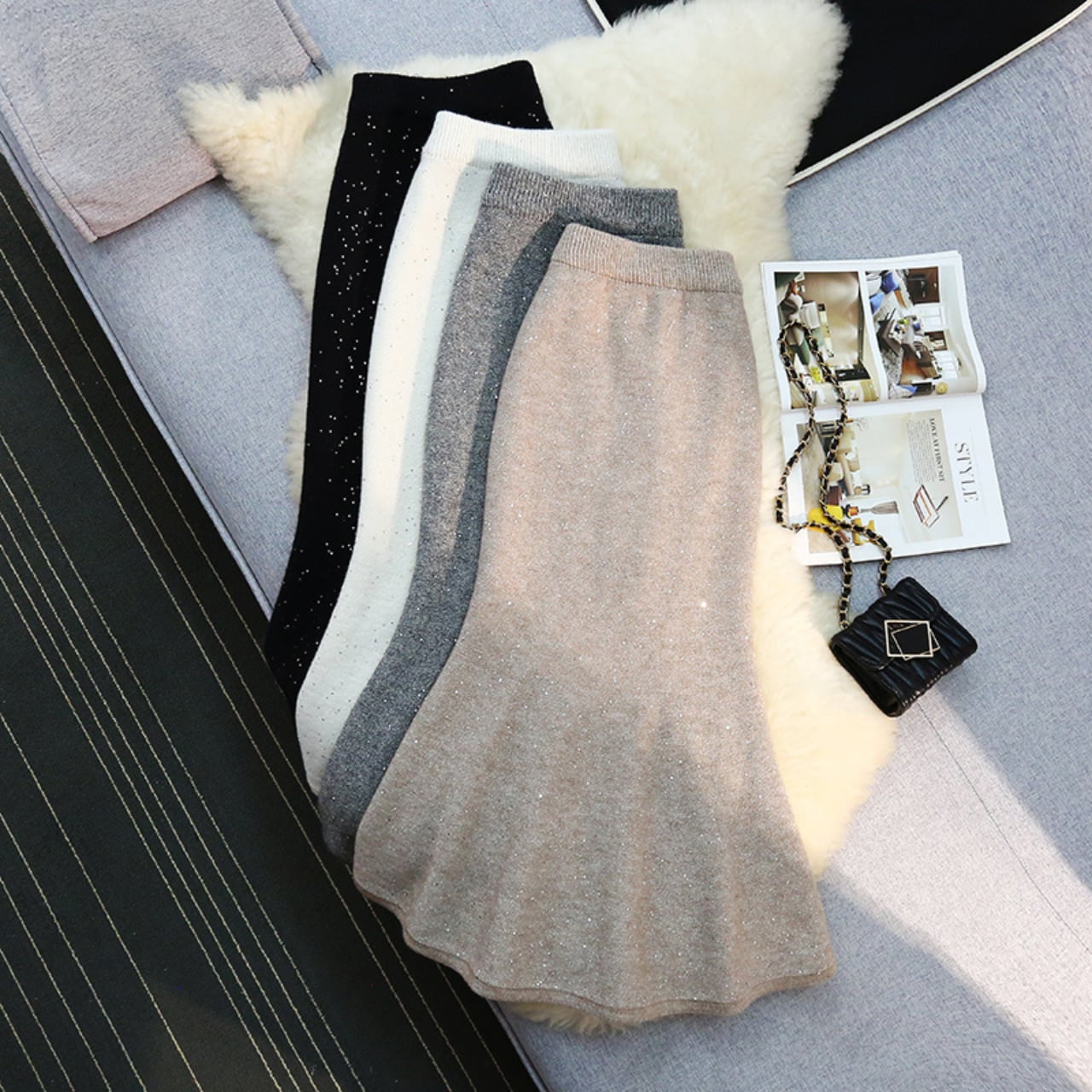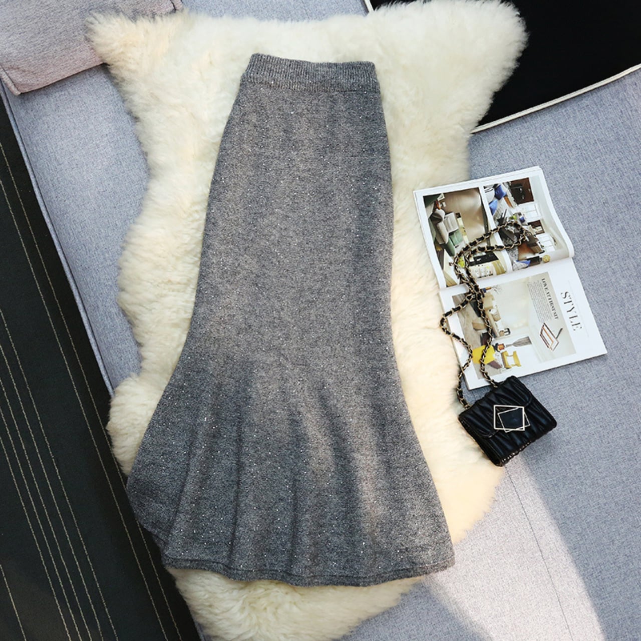 グリッター フィッシュテール ニットスカート 4color B66