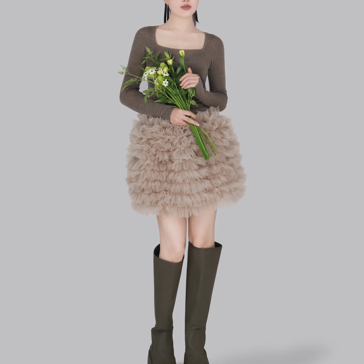 2wayボリュームチュール スカート/トップス B68 ライトティーブラウン