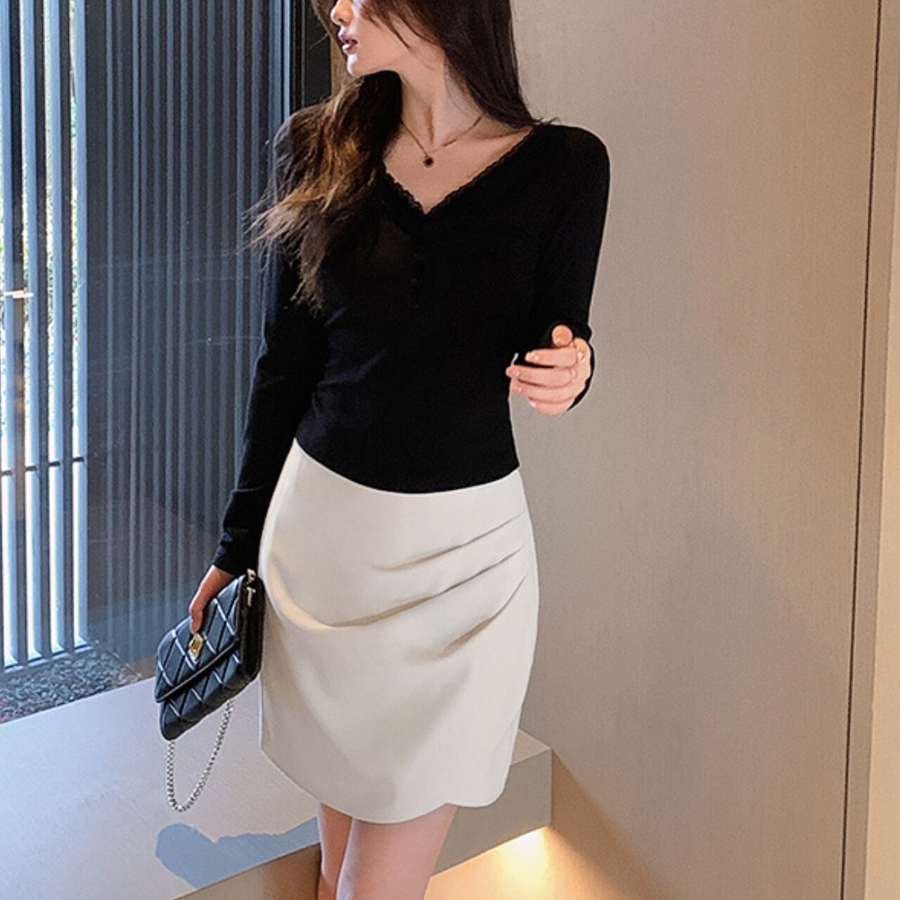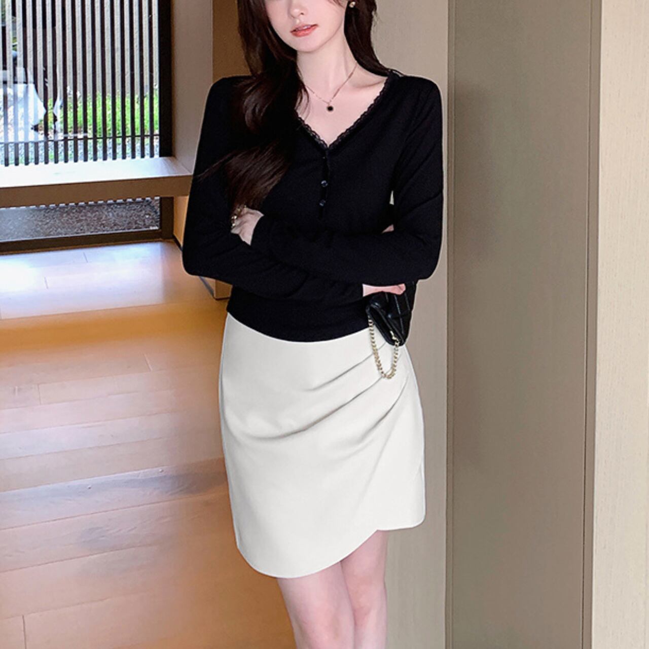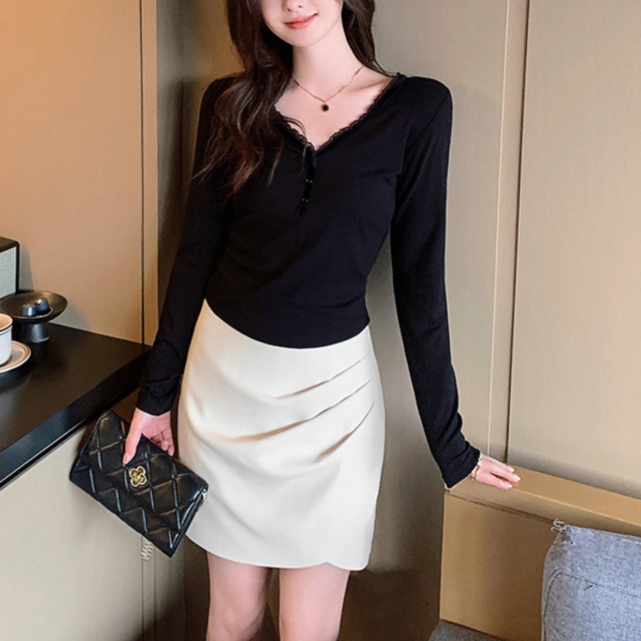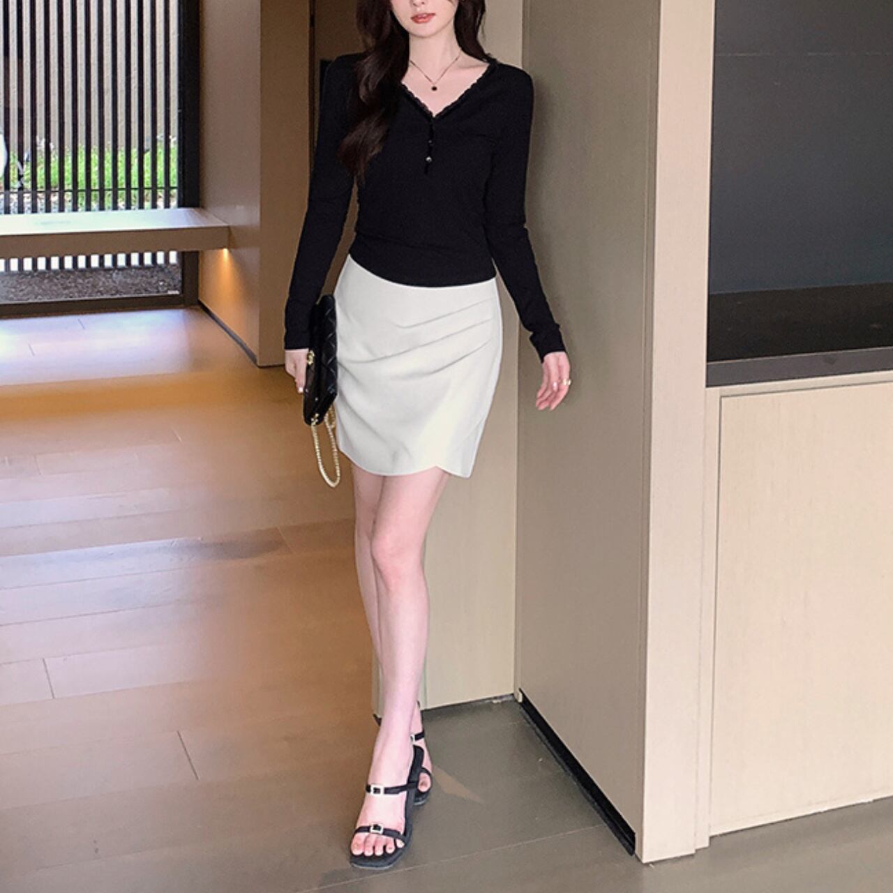 なめらかな素材感と、さりげないドレープが美しく映えるハイウエストスカート。