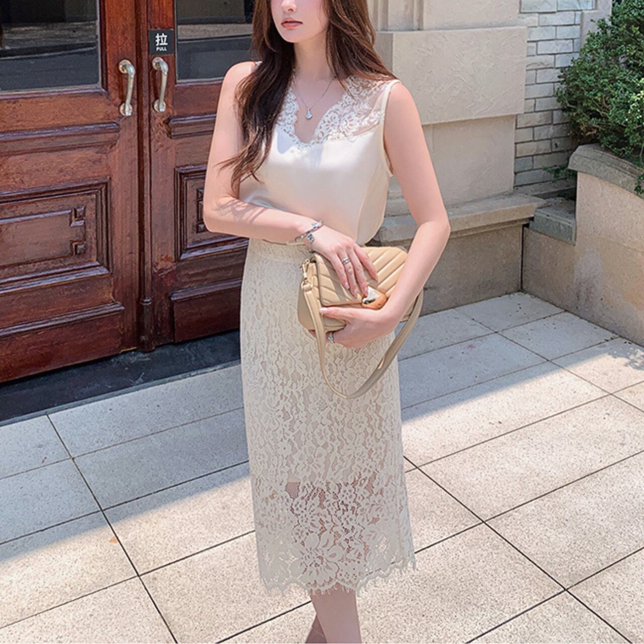 女性らしさを引き立てる繊細なレースに、すっきりと美しいタイトシルエット。