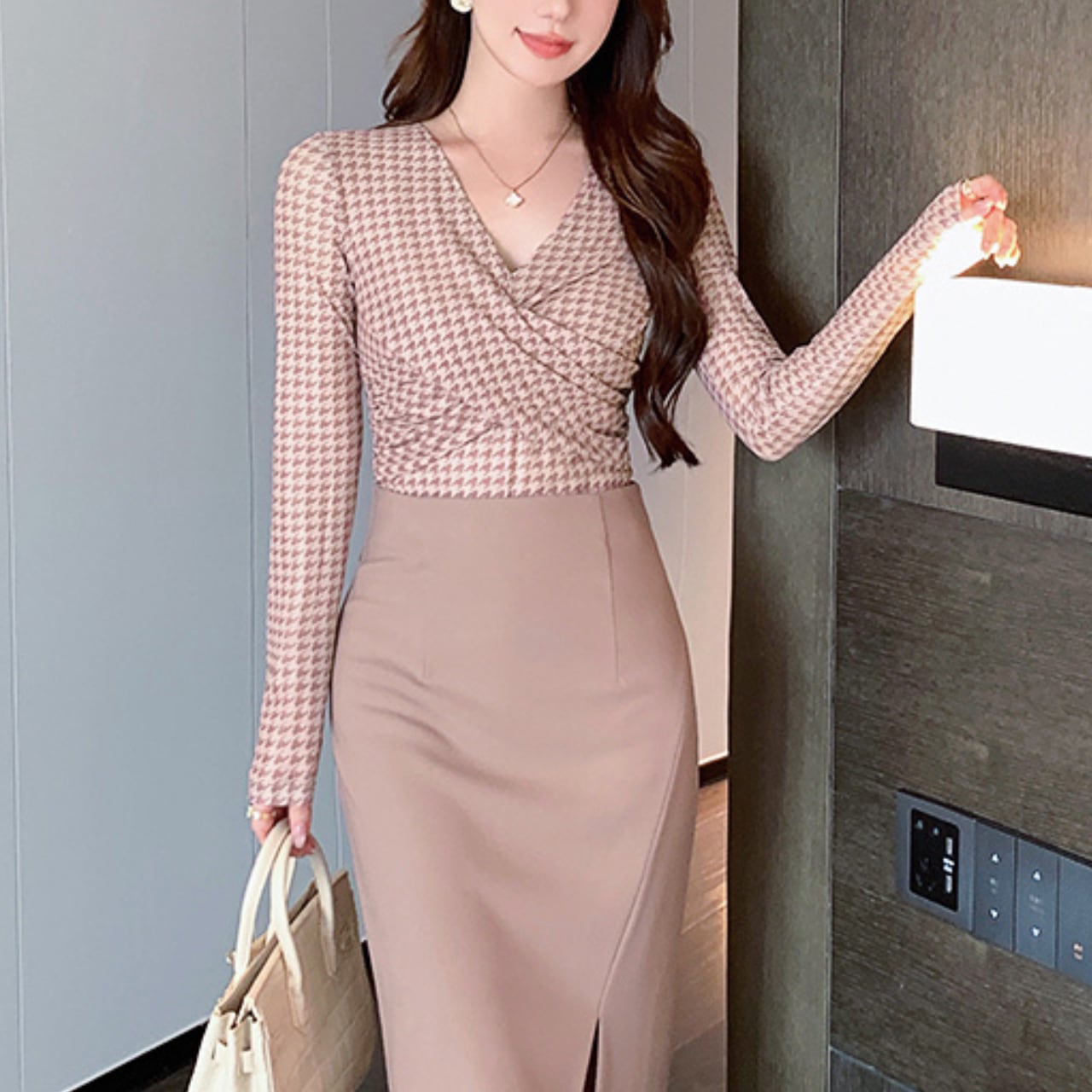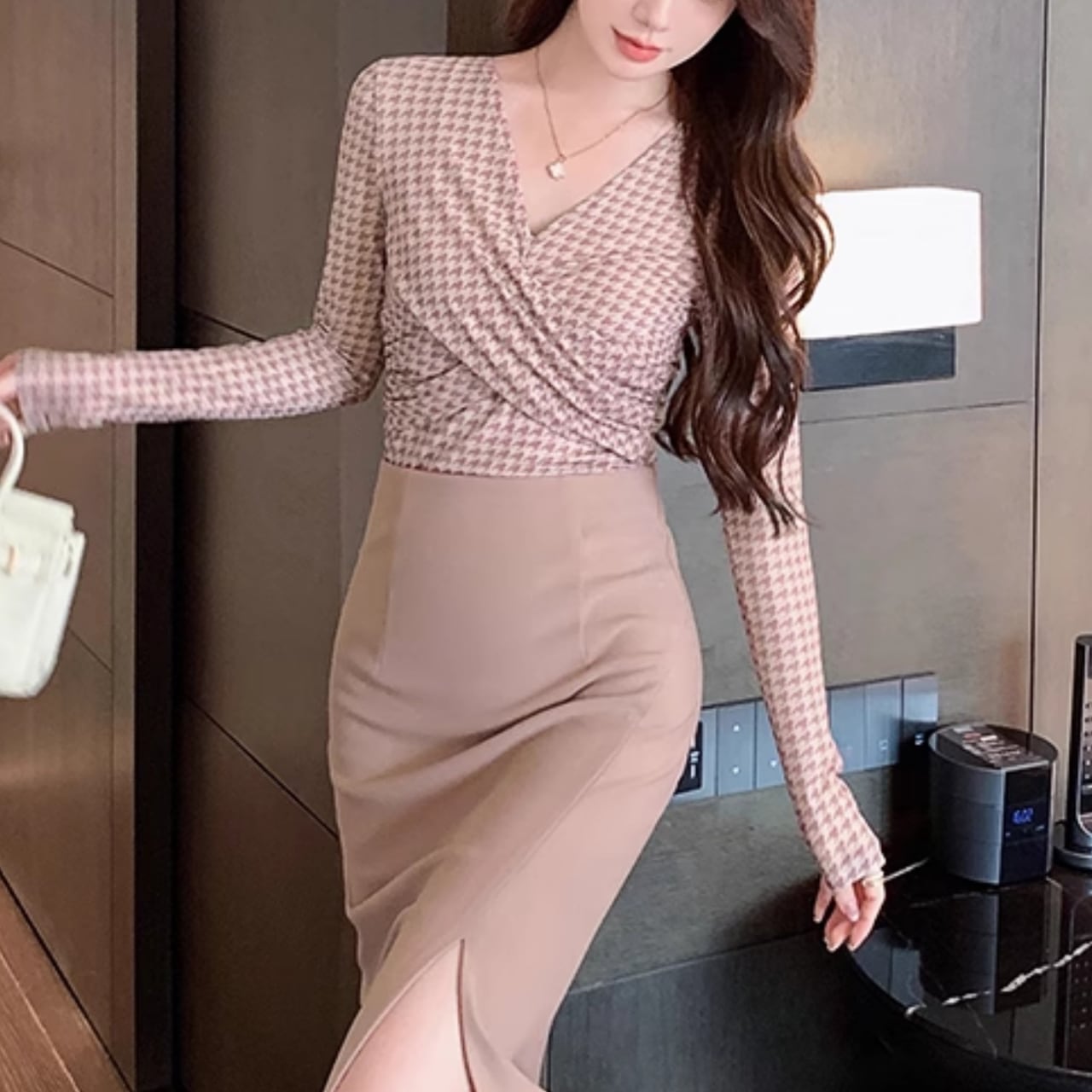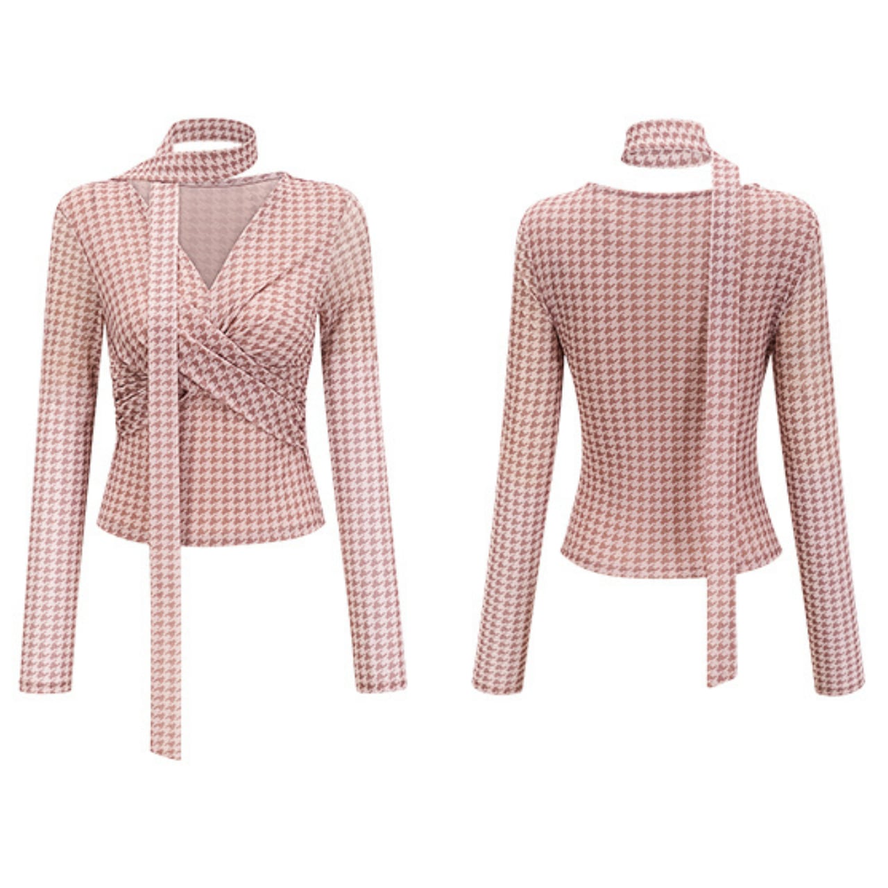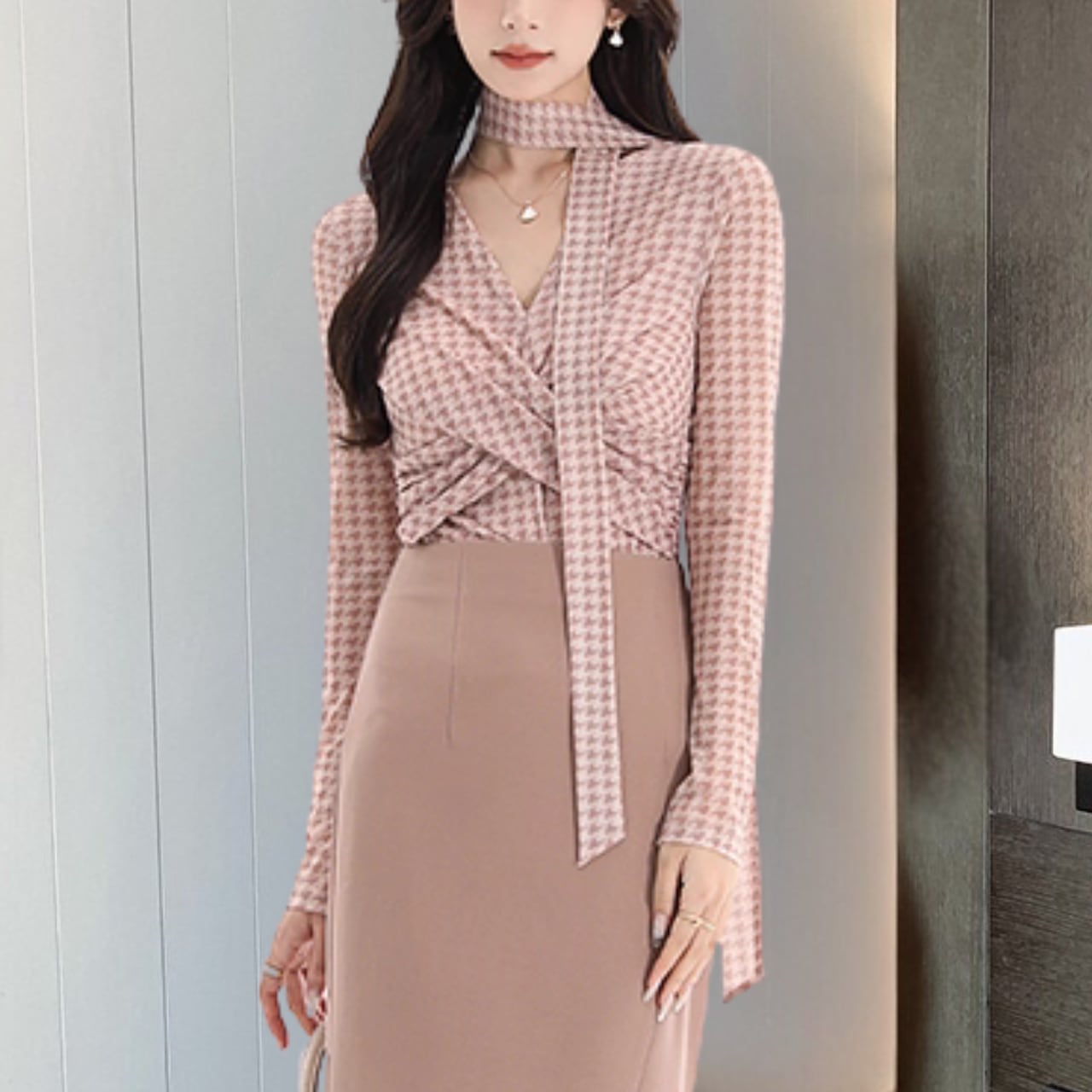 顔まわりを華やかに演出するスカーフ付きのラップトップス。