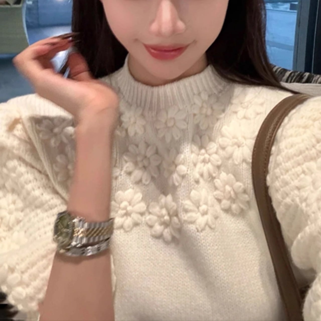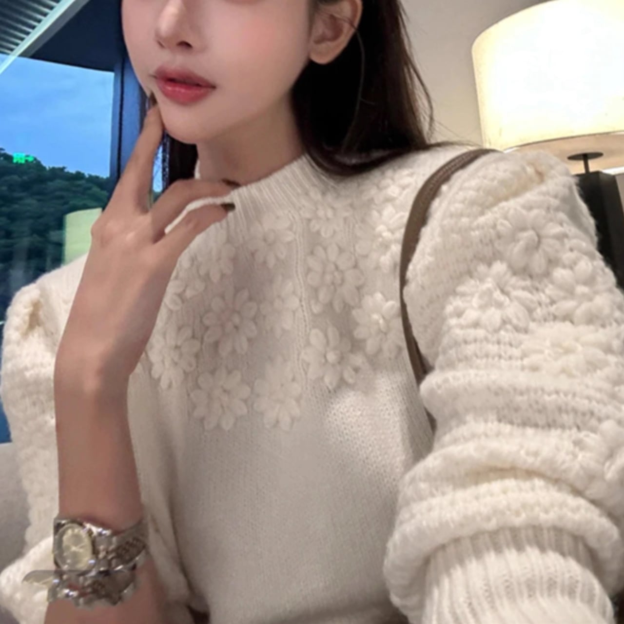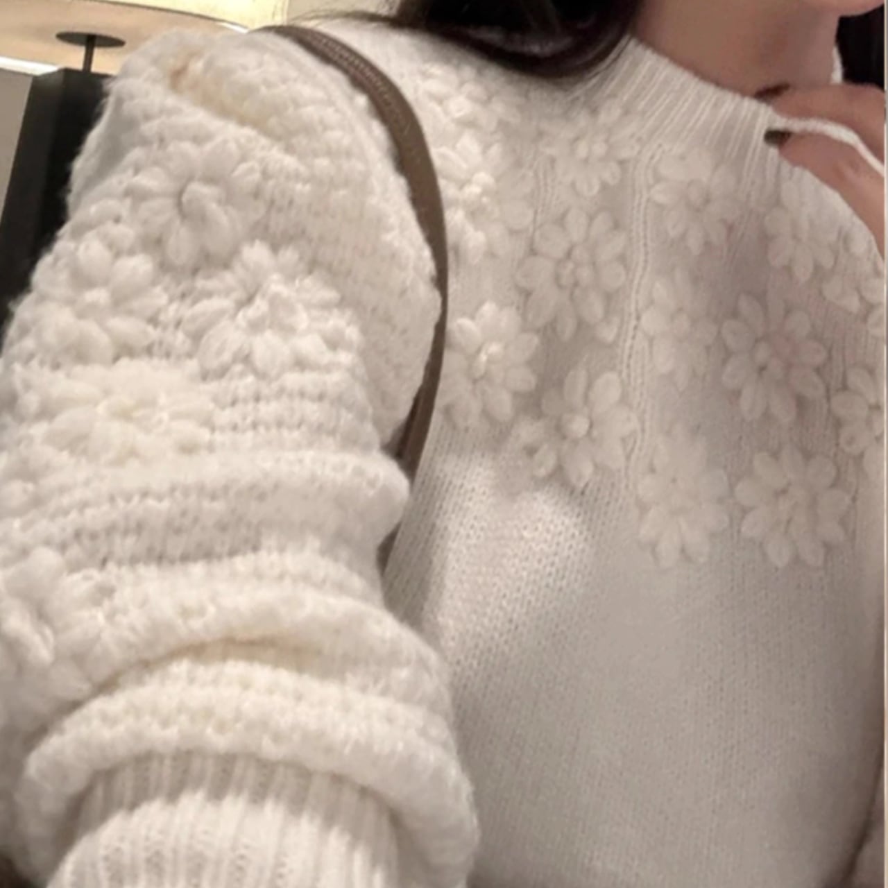 立体的なフラワーニットがふんわりと可愛いプルオーバー。