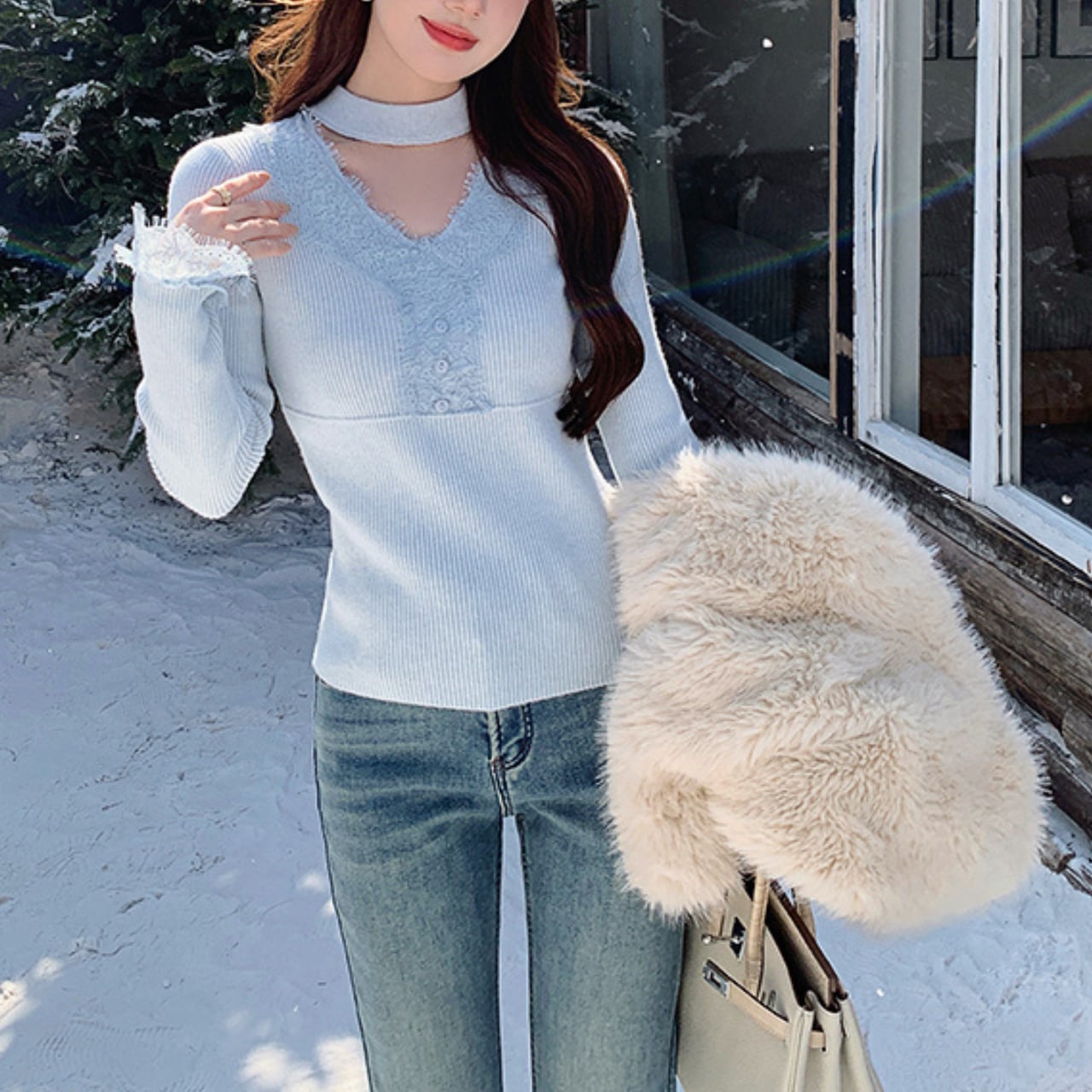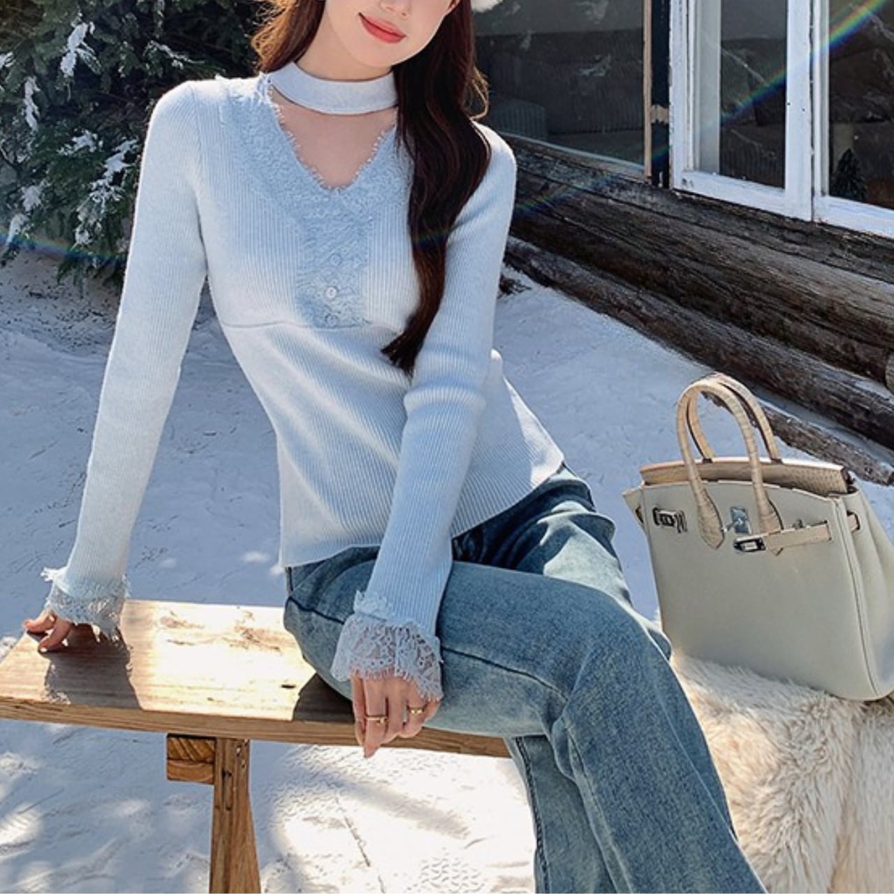 繊細なレースとカットアウトデザインが印象的なリブニットトップス。程よくフィットするシルエットと高い伸縮性で、美しいラインを引き立てます。デニムと合わせてカジュアルに、スカートと合わせてエレガントに着こなせる万能アイテムです。
