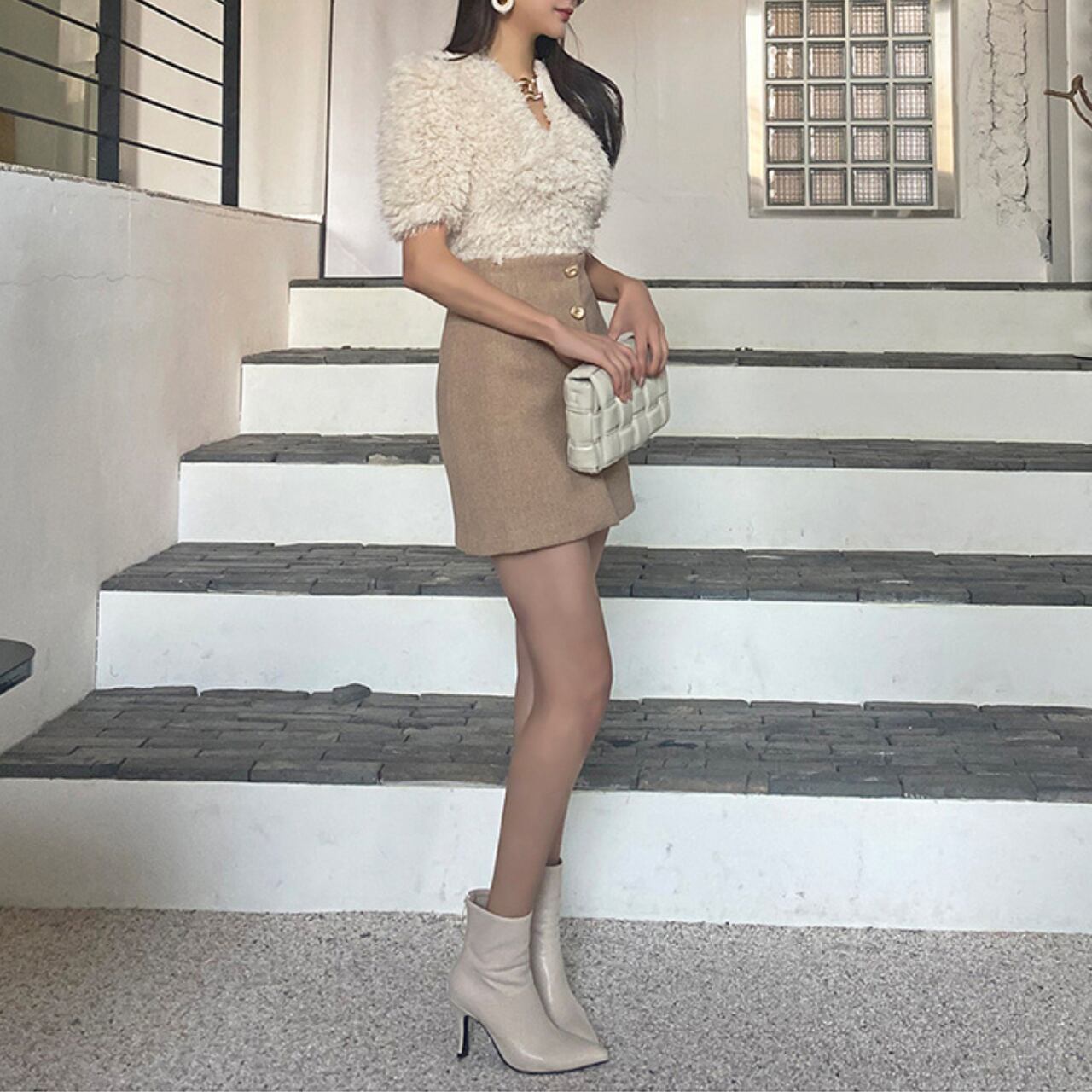 秋冬の季節にぴったりなあたたかみのあるデザインで、ニットやブーツと合わせれば大人可愛いスタイルが完成。コンパクトなシルエットで脚長効果も期待でき、デイリーからお出かけコーデまで幅広く活躍します。