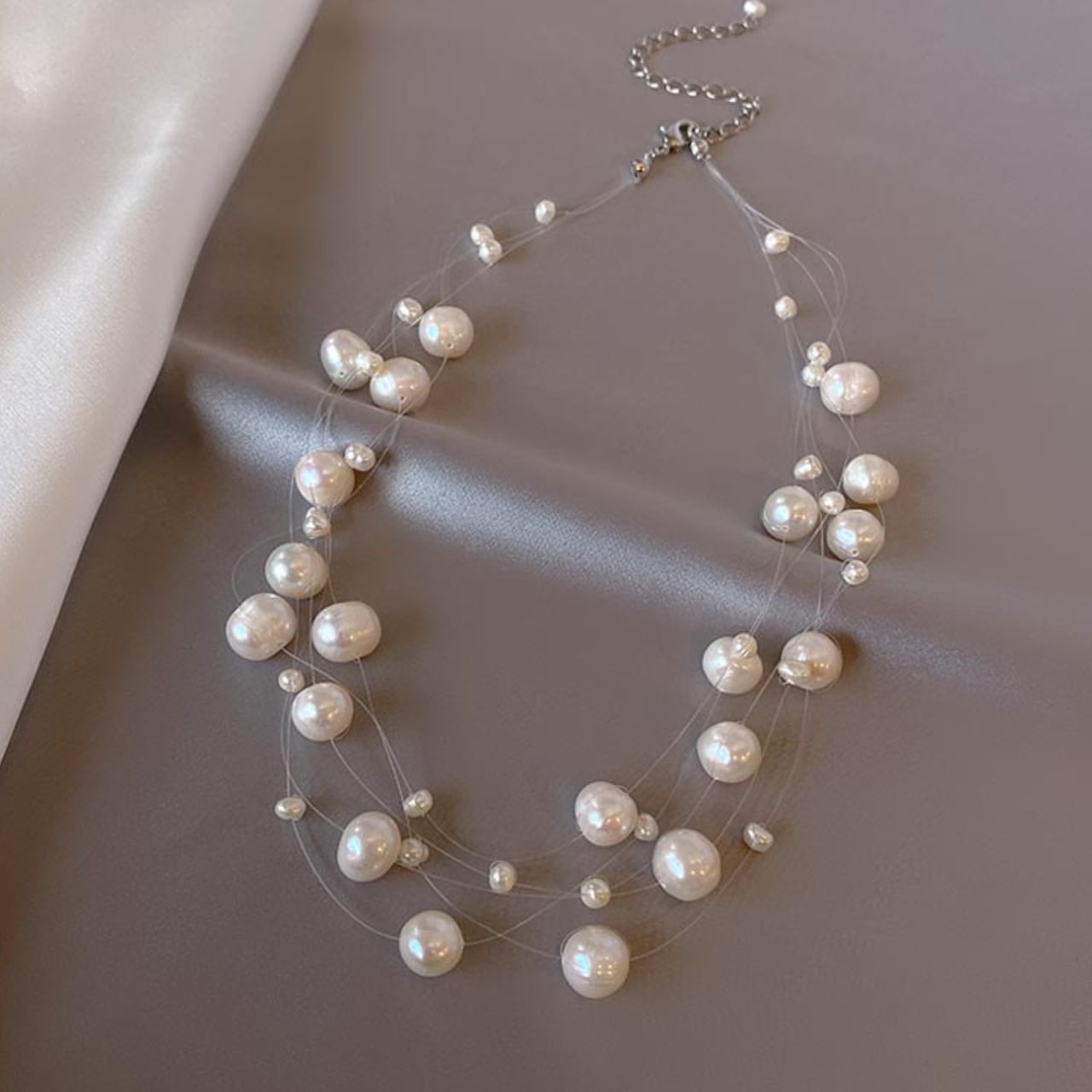 上品な光沢を放つ天然淡水パールをあしらったネックレス。