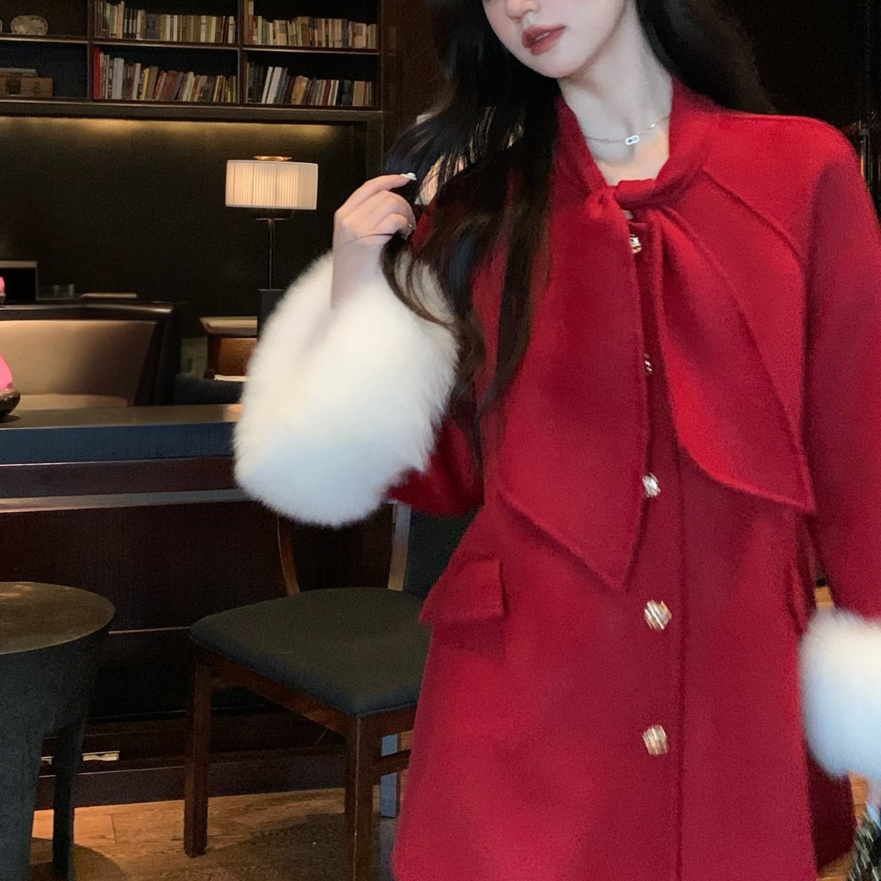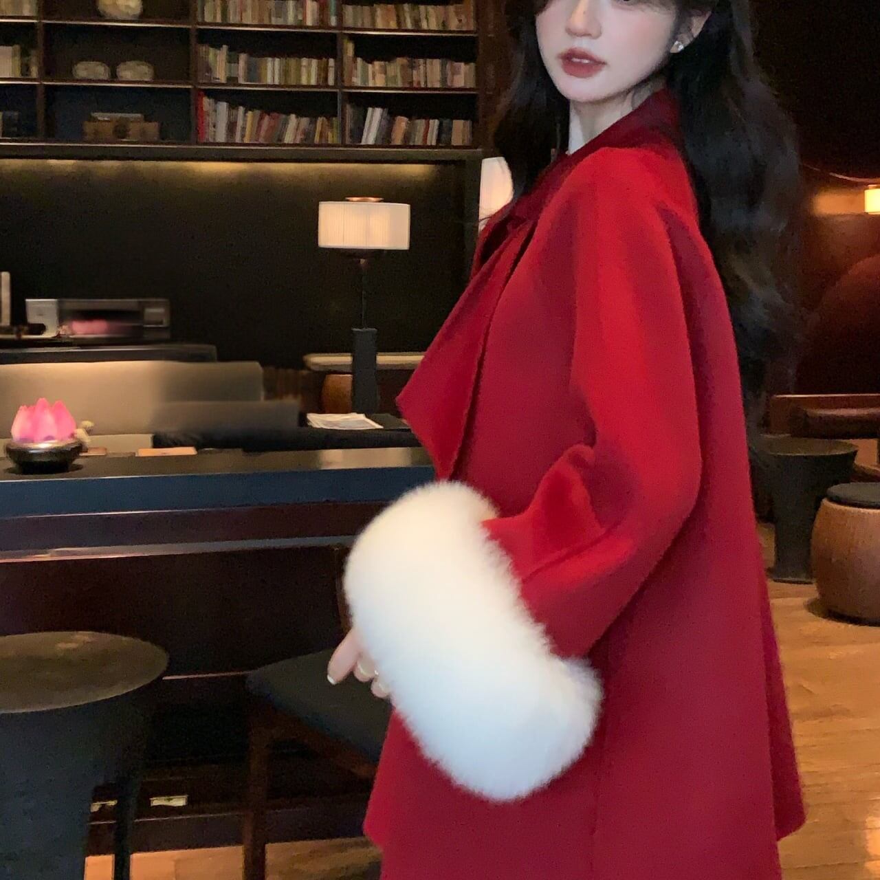 上質なウール素材を贅沢に使用した、エレガントなショートコート。 袖口のフォックスファーとフロントのリボンデザインが、クラシカルな印象を引き立てます。 ふんわりと広がるシルエットが美しく、ワンピースにもパンツスタイルにも相性抜群。 特別な日にも、日常の装いにも華やぎを添える一着です。 【サイズ】 XS:胸囲 104cm、袖丈 66cm、着丈 76cm(150〜158cm 前後) S :胸囲 108cm、袖丈 67cm、着丈 77cm(156〜165cm 前後) M :胸囲 112cm、袖丈 68cm、着丈 78cm(163〜170cm 前後) ※採寸方法により1〜3cmの誤差がある場合がございます。 【カラー】 クリーミーホワイト ブラック ワインレッド 【素材】 表地:ウール100% 袖口ファー:フォックスファー100% 【お手入れ方法】 ・水洗い不可 ・専門業者によるドライクリーニング推奨 ・漂白不可 ・直射日光を避け、陰干ししてください ・ハンガーにかけて保管してください :::::::::::::::::::::::: 【お届けについて】 当ショップの商品は海外より取り寄せ・発送となる為 ご入金から5日〜15日前後でお届けいたします。 :::::::::::::::::::::::: ¨¨¨¨¨¨¨¨¨¨¨¨¨¨¨¨¨¨¨¨¨¨¨¨¨¨¨¨¨¨¨¨¨¨¨¨¨¨¨¨¨¨¨¨¨ 【注意事項】 ・商品到着までに2〜3週間程頂いております。 ・海外在庫のため在庫情報に時差が生じますため 在庫切れや生産中止、生産に遅れがある場合は、受注後でも キャンセルさせていただく恐れがございます。 予めご了承ください。 ・イメージ違い・サイズ違いによる交換はいたしかねます。 ・スマートフォンやパソコンの液晶の違いにより、 商品の色味に若干の差が発生する場合がございます。 ・発送時期によりデザイン仕様(素材や細部)の変更が ある場合がございます。 ¨¨¨¨¨¨¨¨¨¨¨¨¨¨¨¨¨¨¨¨¨¨¨¨¨¨¨¨¨¨¨¨¨¨¨¨¨¨¨¨¨¨¨¨¨ 【お支払い方法】 以下の各種お支払い方法をお選びいただけます。 ・BASEかんたん決済 ・クレジットカード決済(VISA/Master/JCB/AMERICAN EXPRESS) ・キャリア決済 ・コンビニ決済・Pay-easy ———————————— ご購入前にこちらをお読みください →https://vulevu.official.ec/about ————————————