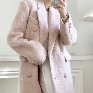 ふんわりとした毛足のある質感が柔らかく上品な印象を与え、着るだけで洗練された雰囲気を演出します。
