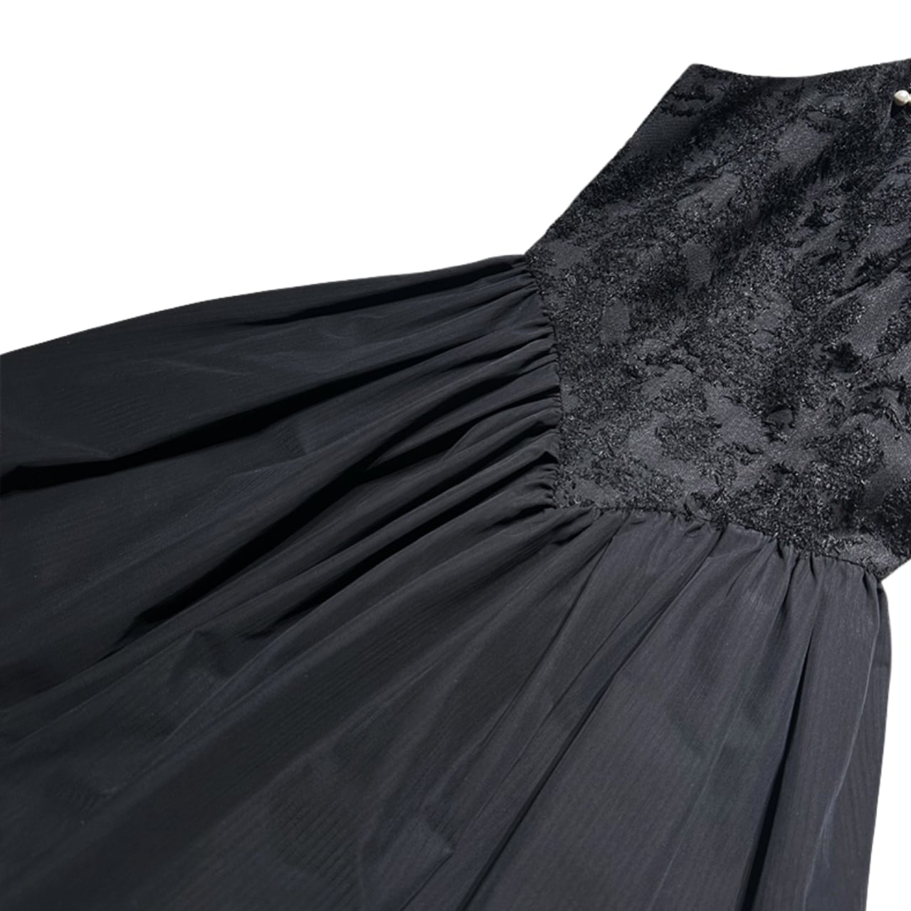 上身頃は繊細なフラワージャカード、スカート部分はふんわりと広がるAラインで上品なシルエットを描きます。海外のゴージャスなホテルでも映える一枚。特別な日をより美しく、印象的に演出してくれます。