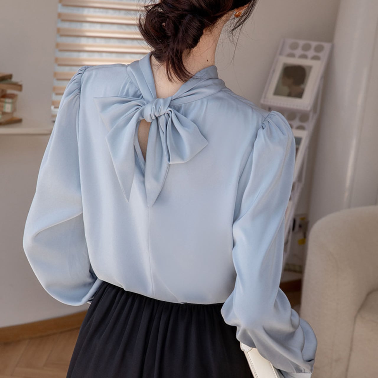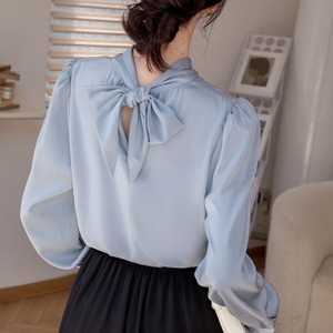 落ち感のある素材と程よいボリュームスリーブが、女性らしく上品なシルエットを演出します。