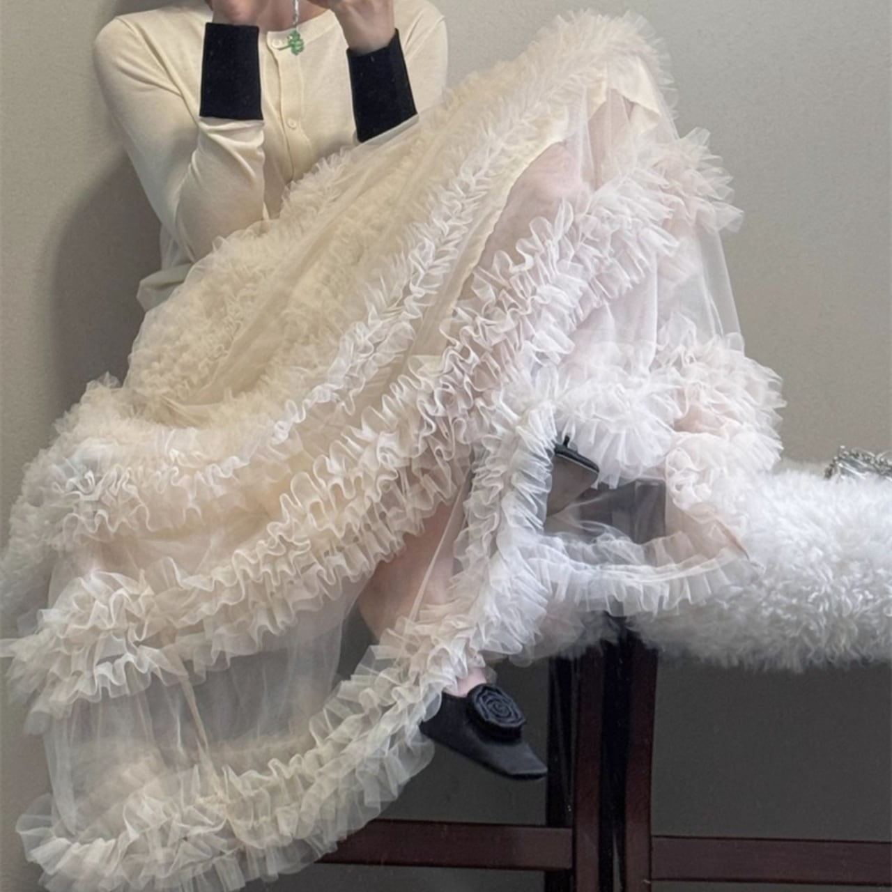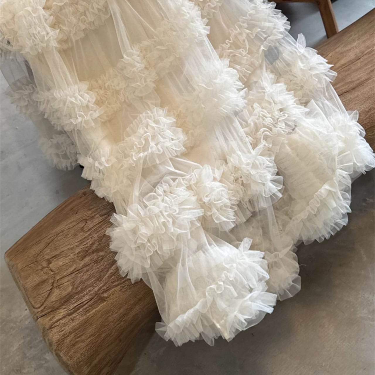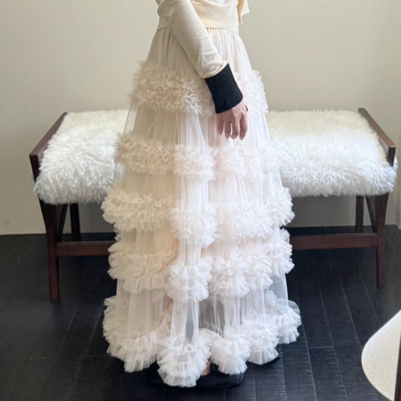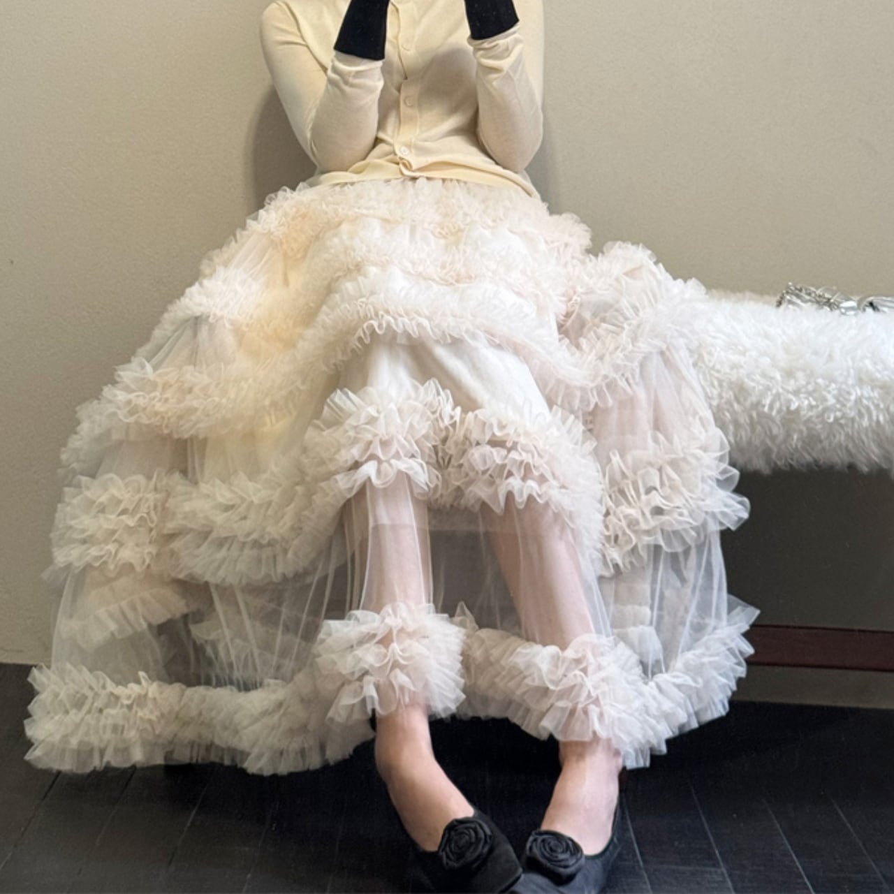 ふんわりと軽やかなチュールを贅沢に重ね、歩くたびに揺れる優雅なシルエットが魅力です。