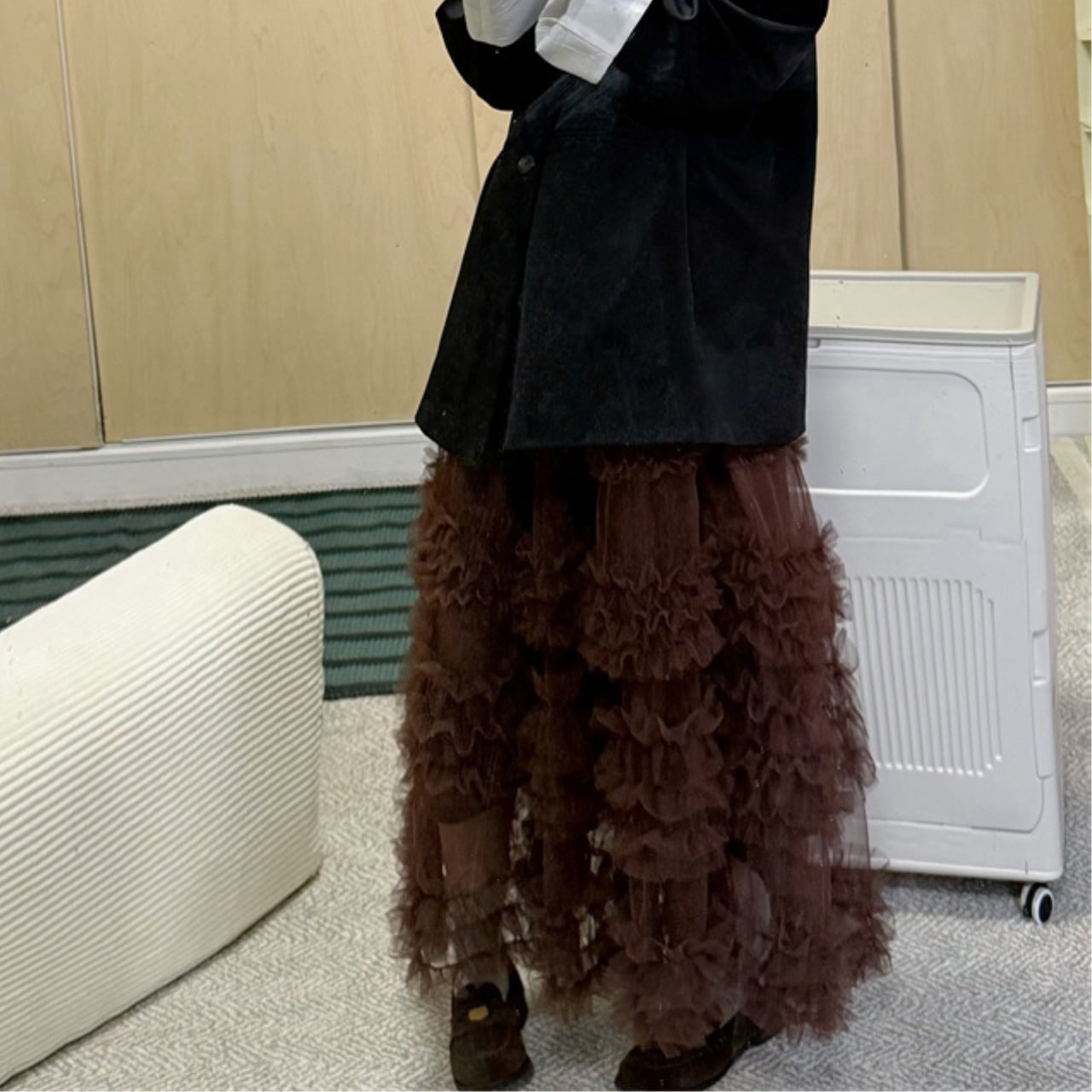 波打つように立体的なフリルが美しい、ファンガストリムデザインのチュールロングスカート。