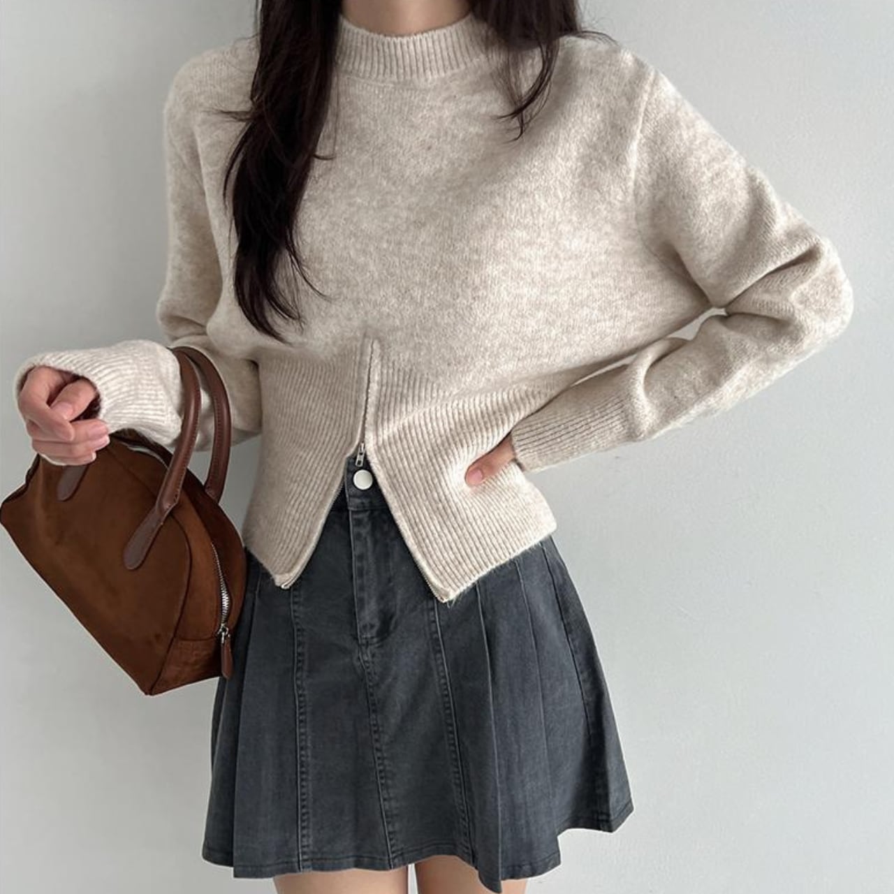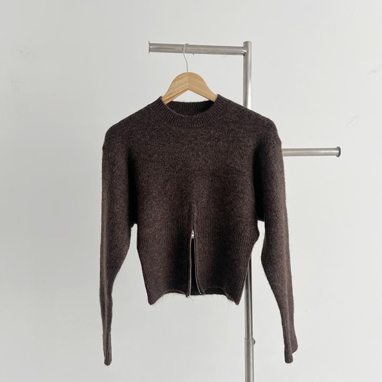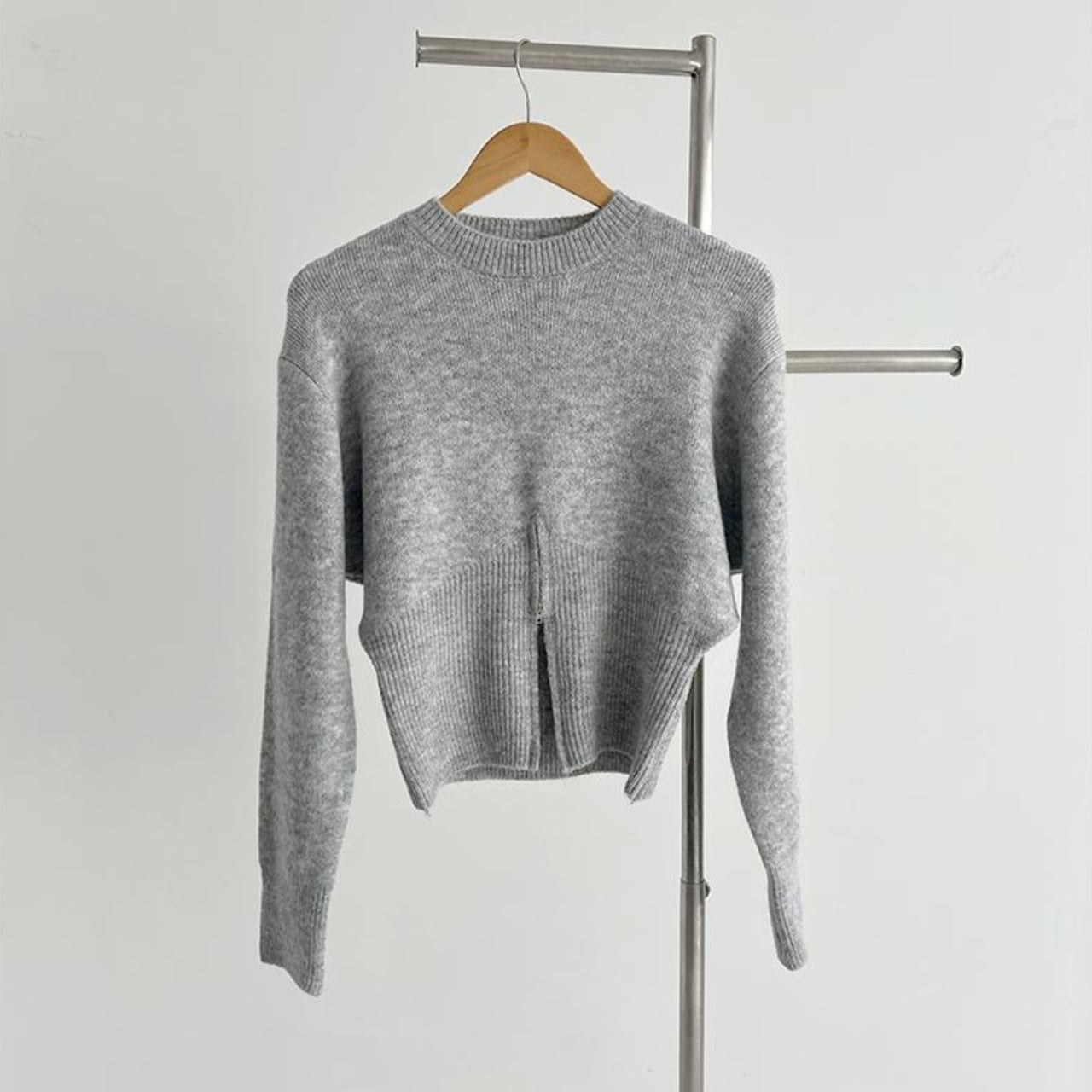ジップデザインがアクセントになった、上品なニットトップス。