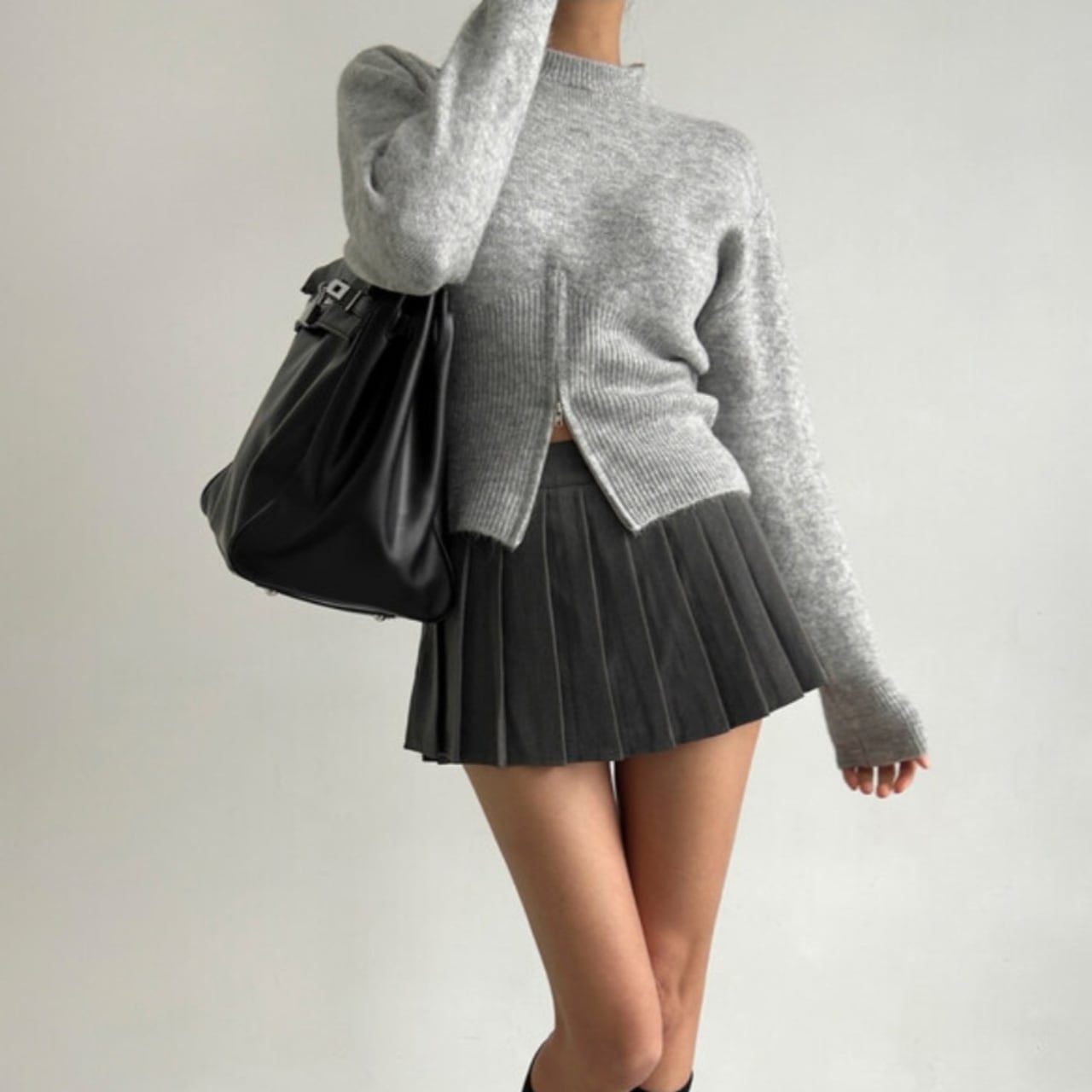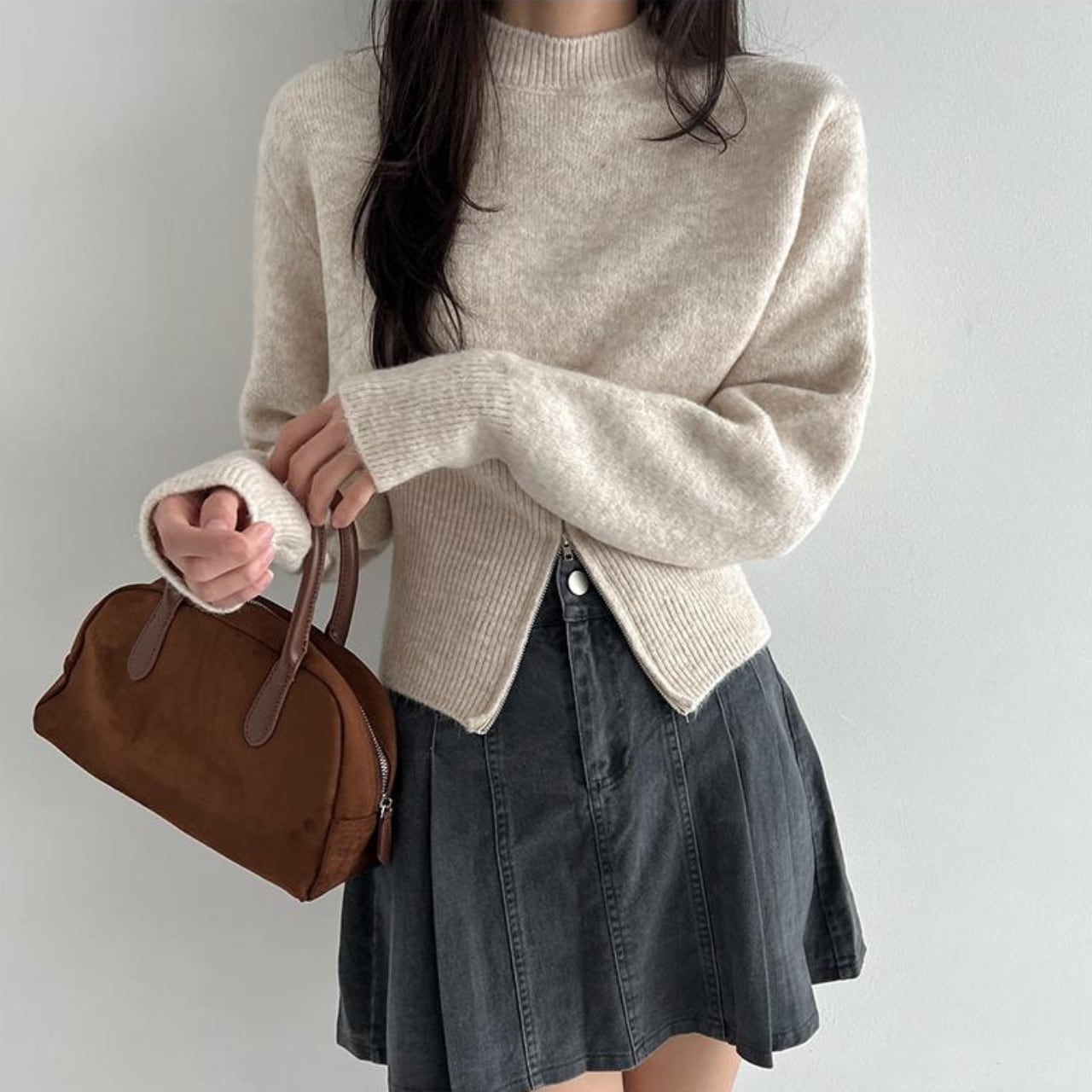 サイドのジップを開ければ抜け感のあるスタイルに、