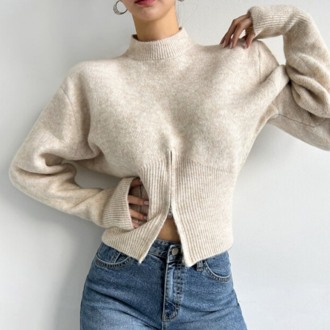 ジッパーデザインニットトップス T04
