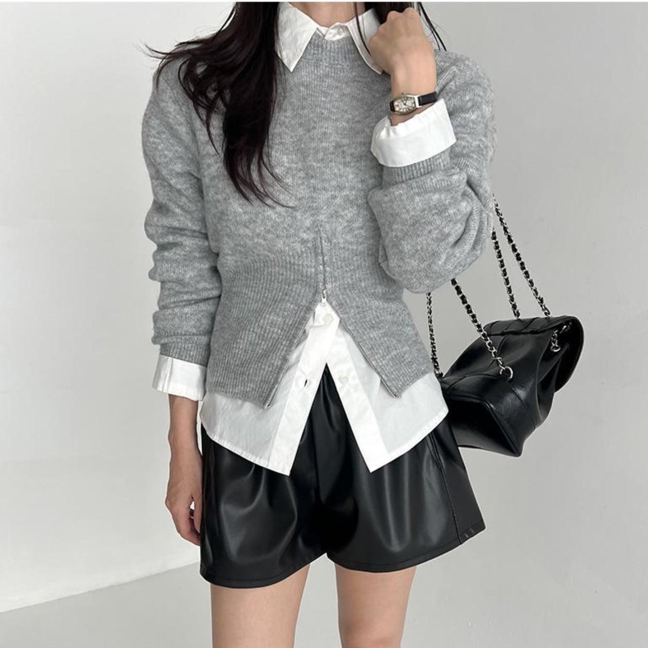 閉めればきれいめなシルエットに整う万能デザイン。