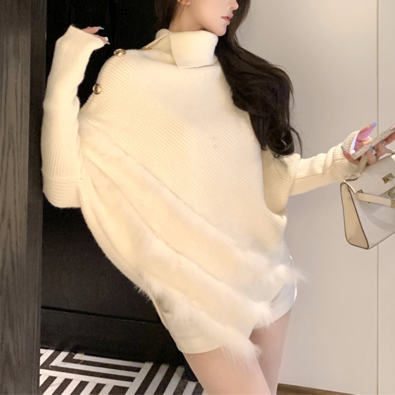パンツにもスカートにも合わせやすく、秋冬のコーディネートを一層格上げしてくれる一枚です。