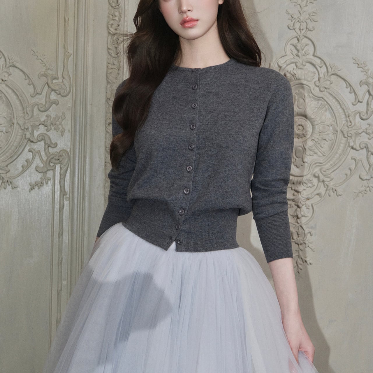 羽織るだけで全体の印象をエレガントに整えてくれます。