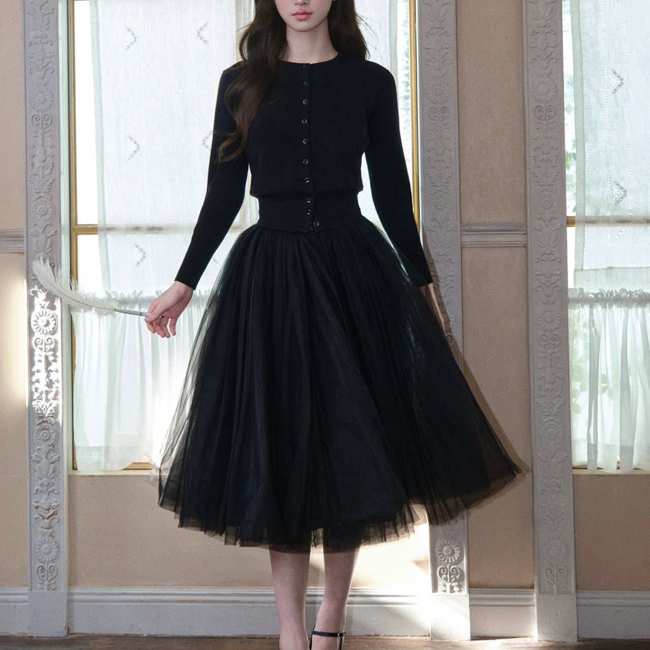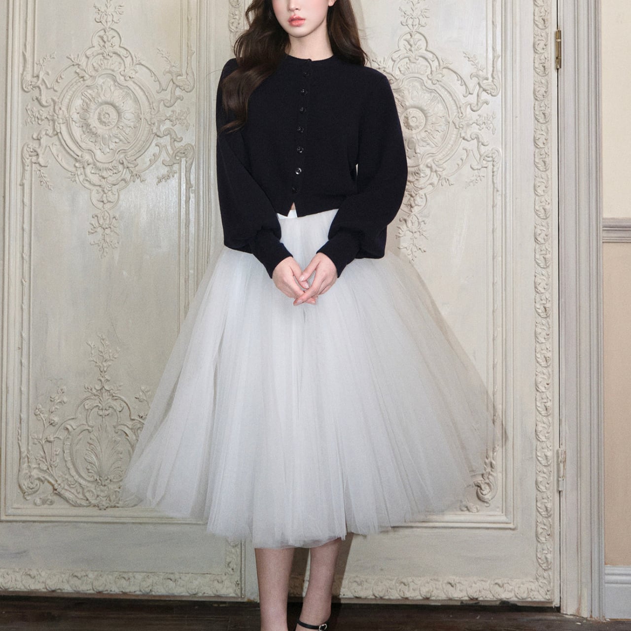 チュールスカートにも、ワンピースにも、パンツスタイルにも。