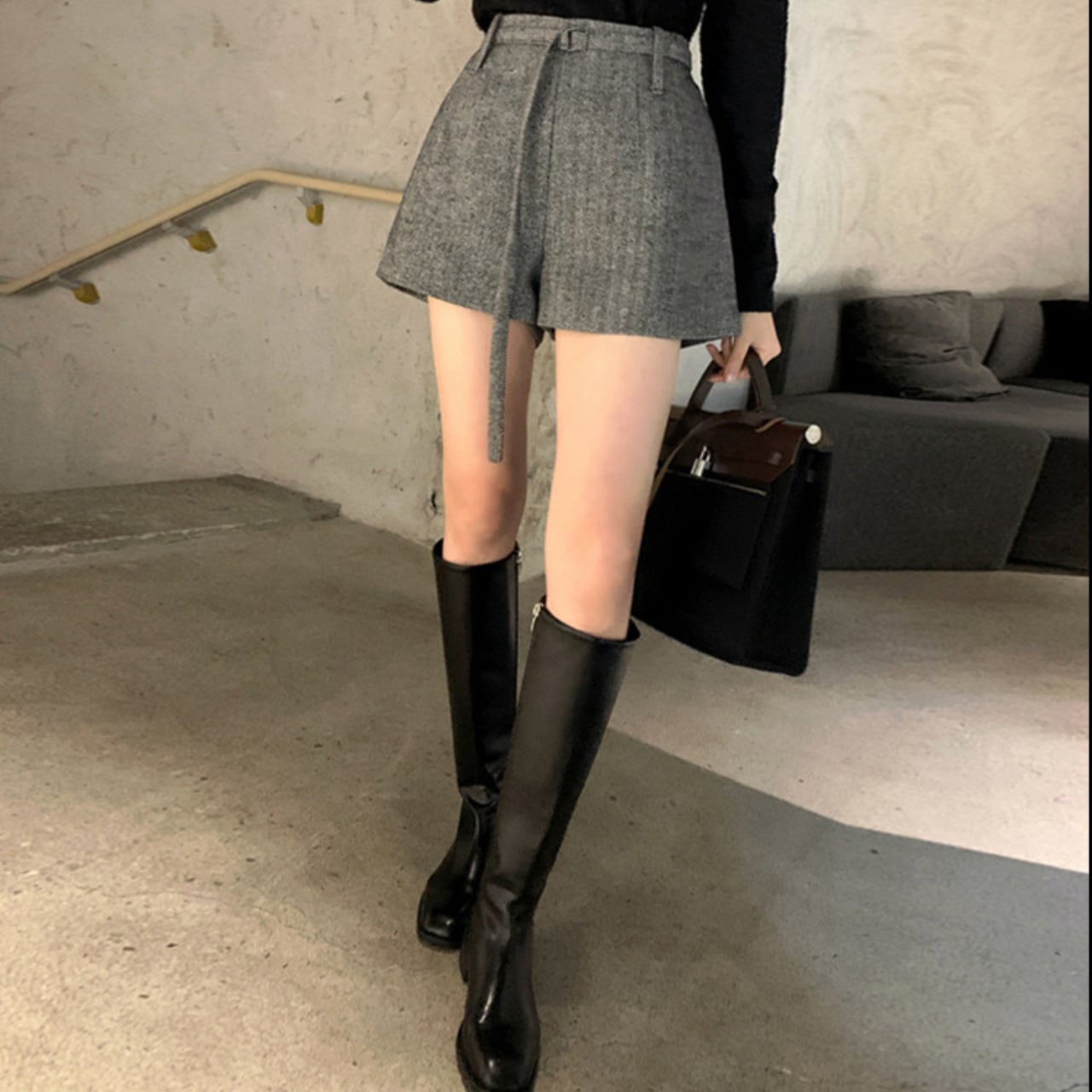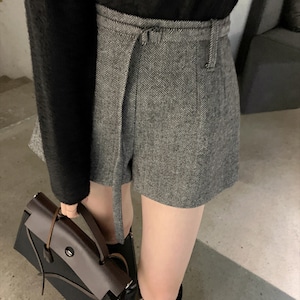 脚長効果抜群のハイウエストショートパンツ。シンプルなデザインにさりげないタックディテールを加え、上品でスタイリッシュな印象に。秋冬コーデの定番として、ニットやジャケット、ロングブーツとの相性も抜群です。通勤やお出かけなど幅広いシーンで活躍する一枚。