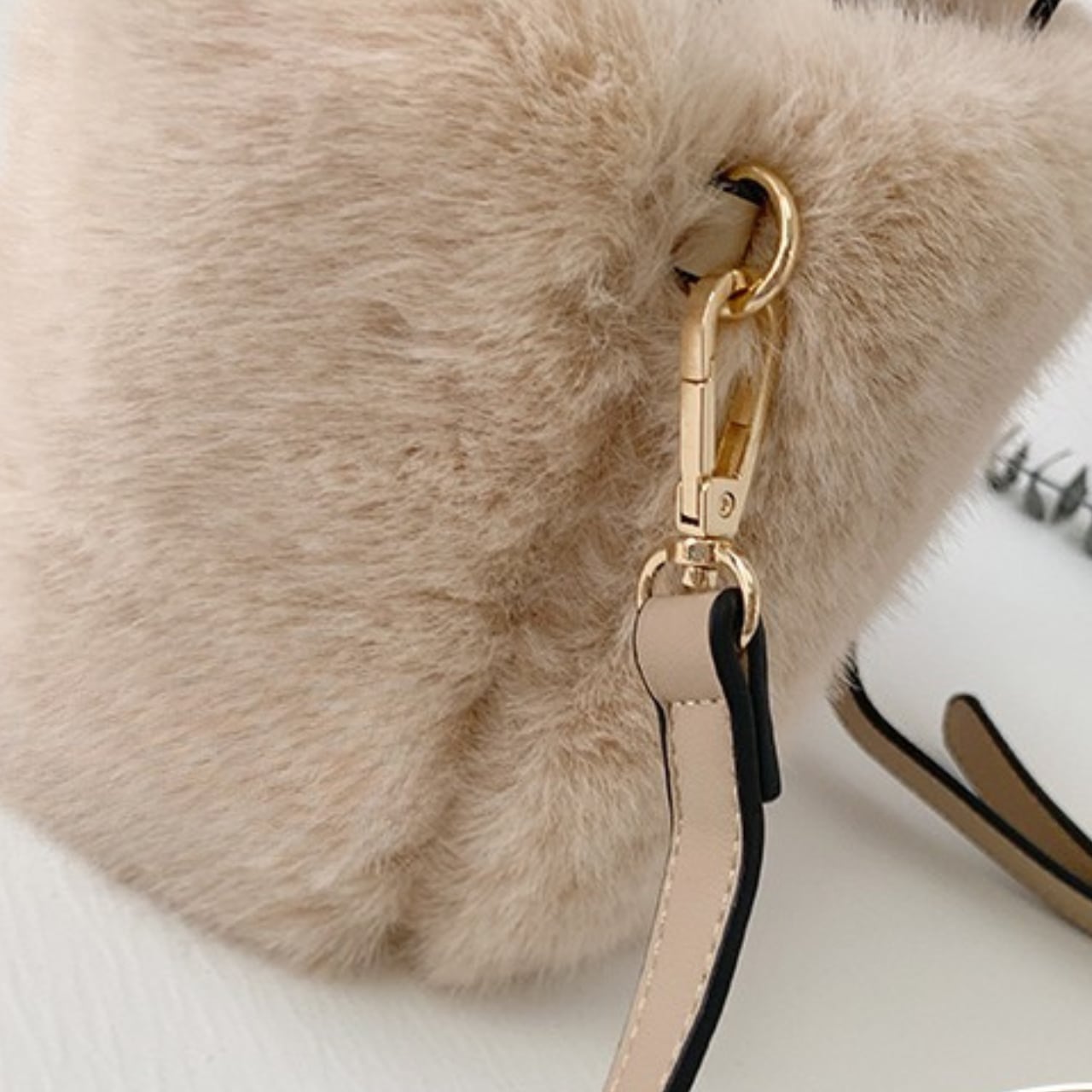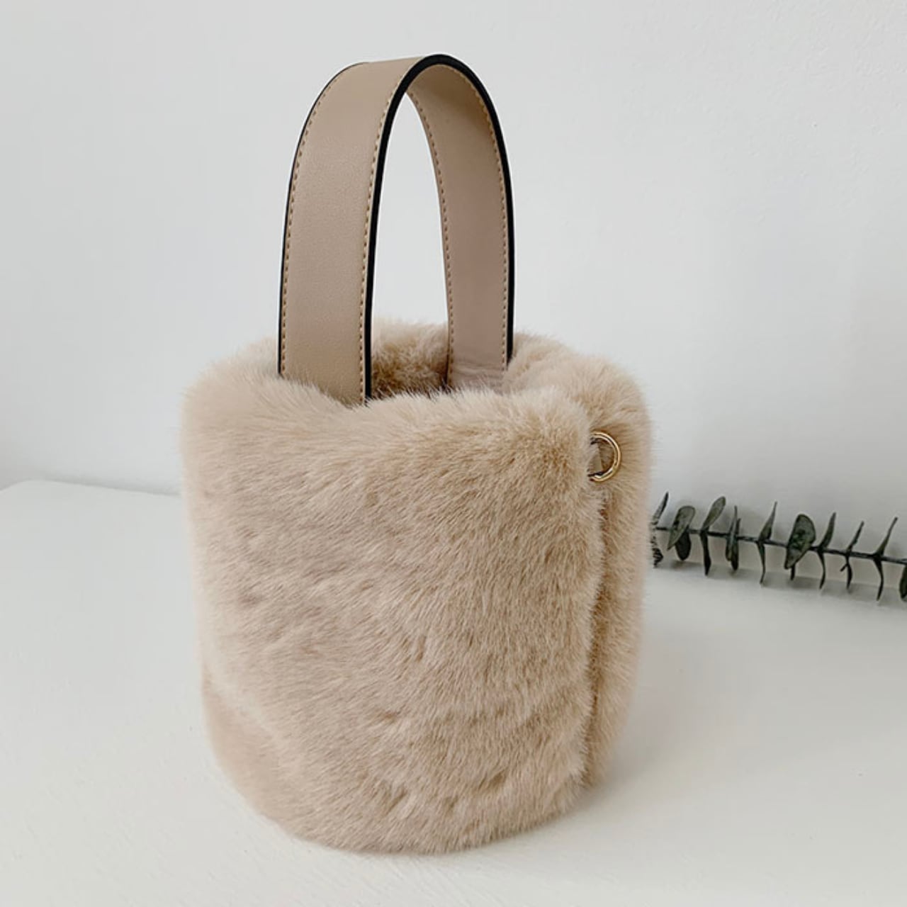 ふわふわのエコファーを贅沢に使用したバケットバッグ。